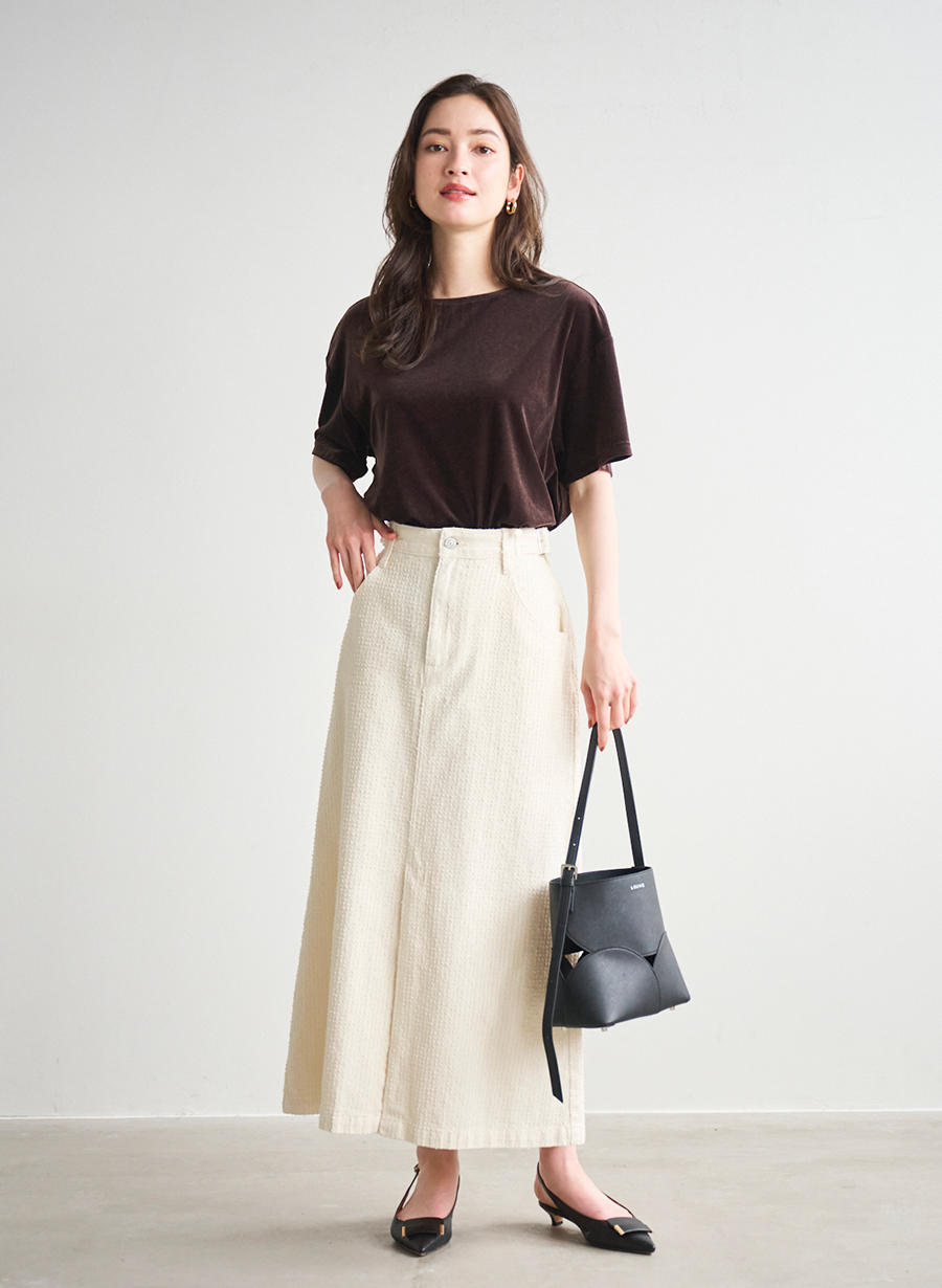 STYLING NO.2888 2025.9.15 モデル:erisa モデル身長:168cm 0人がお気に入り登録しています 着用アイテム ニードルパンチデニムジャケット/セットアップ可 SIZE:38 COLOR:ブラウン ¥28,600 ニードルパンチデニムスカート/セットアップ可 SIZE:38 COLOR:ブラウン ¥24,200 フィルムシャギープルオーバー/セットアップ可 SIZE:38 COLOR:ブラウン ¥18,700 【追加】スクエアボストンバッグ SIZE:FREE COLOR:グリーン ¥24,200 デザインスニーカー SIZE:38 COLOR:オフ ¥26,400 ※上記アイテム以外は、ONLINE SHOPでのお取り扱いはございません。