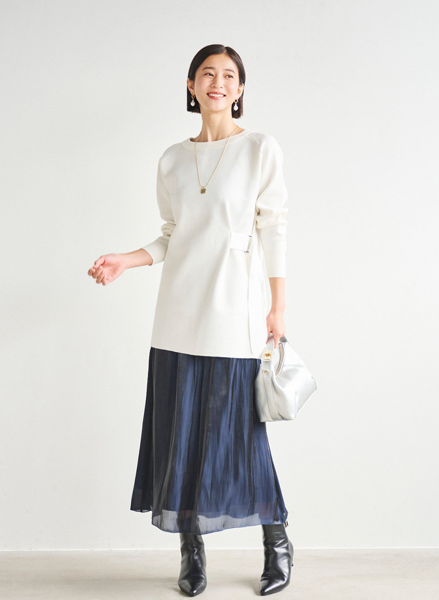 STYLING NO.2911 2025.10.8 モデル:suzuna モデル身長:171cm 0人がお気に入り登録しています 着用アイテム レザーシングルジャケット SIZE:38 COLOR:ベージュ ¥66,000 バイカラーアクセントニットワンピース SIZE:38 COLOR:オフ×ブラック ¥24,200 ¥14,52040%off スリットデザインショートブーツ SIZE:40 COLOR:ブラック ¥39,600 ¥19,80050%off 着せ替えかぶせ付きトートバッグ SIZE:FREE COLOR:グレージュ ¥28,600 ¥20,02030%off ※上記アイテム以外は、ONLINE SHOPでのお取り扱いはございません。