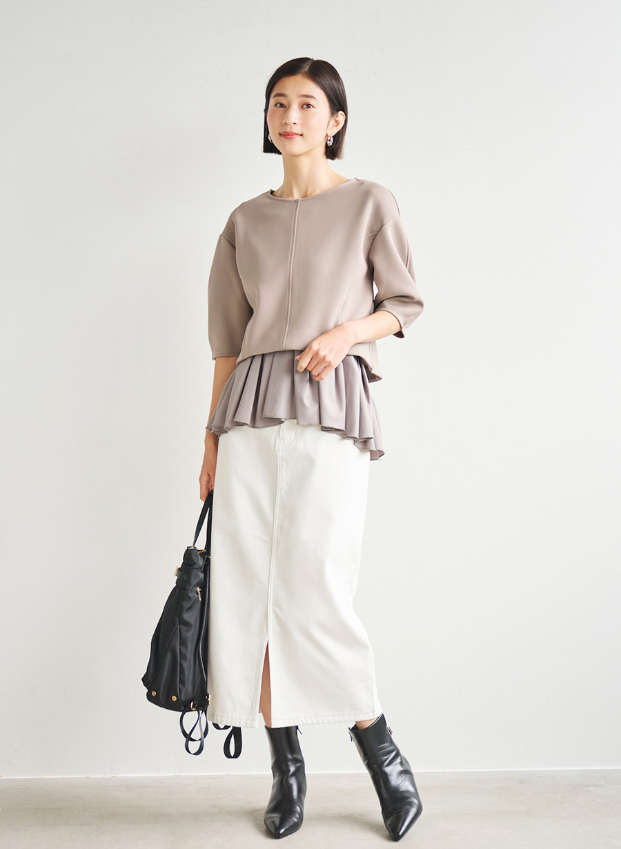 STYLING NO.3017 2026.1.22 モデル:suzuna モデル身長:171cm 0人がお気に入り登録しています 着用アイテム フェザーギャザースリーブニットプルオーバー SIZE:38 COLOR:ブラック ¥17,600 ¥8,80050%off ボンディングタイトスカート SIZE:38 COLOR:ブラック ¥18,700 ¥11,22040%off スリットデザインショートブーツ SIZE:40 COLOR:ブラック ¥39,600 ¥19,80050%off デザインミニショルダーバッグ SIZE:FREE COLOR:ブラック ¥27,500 ※上記アイテム以外は、ONLINE SHOPでのお取り扱いはございません。
