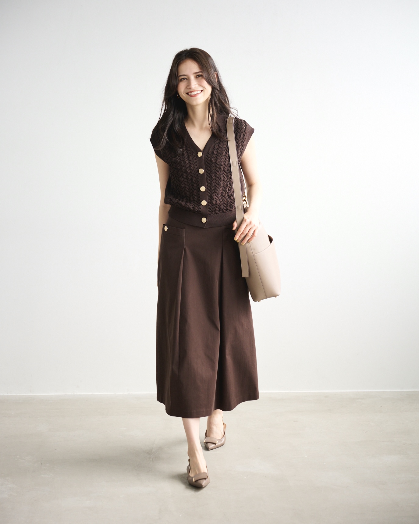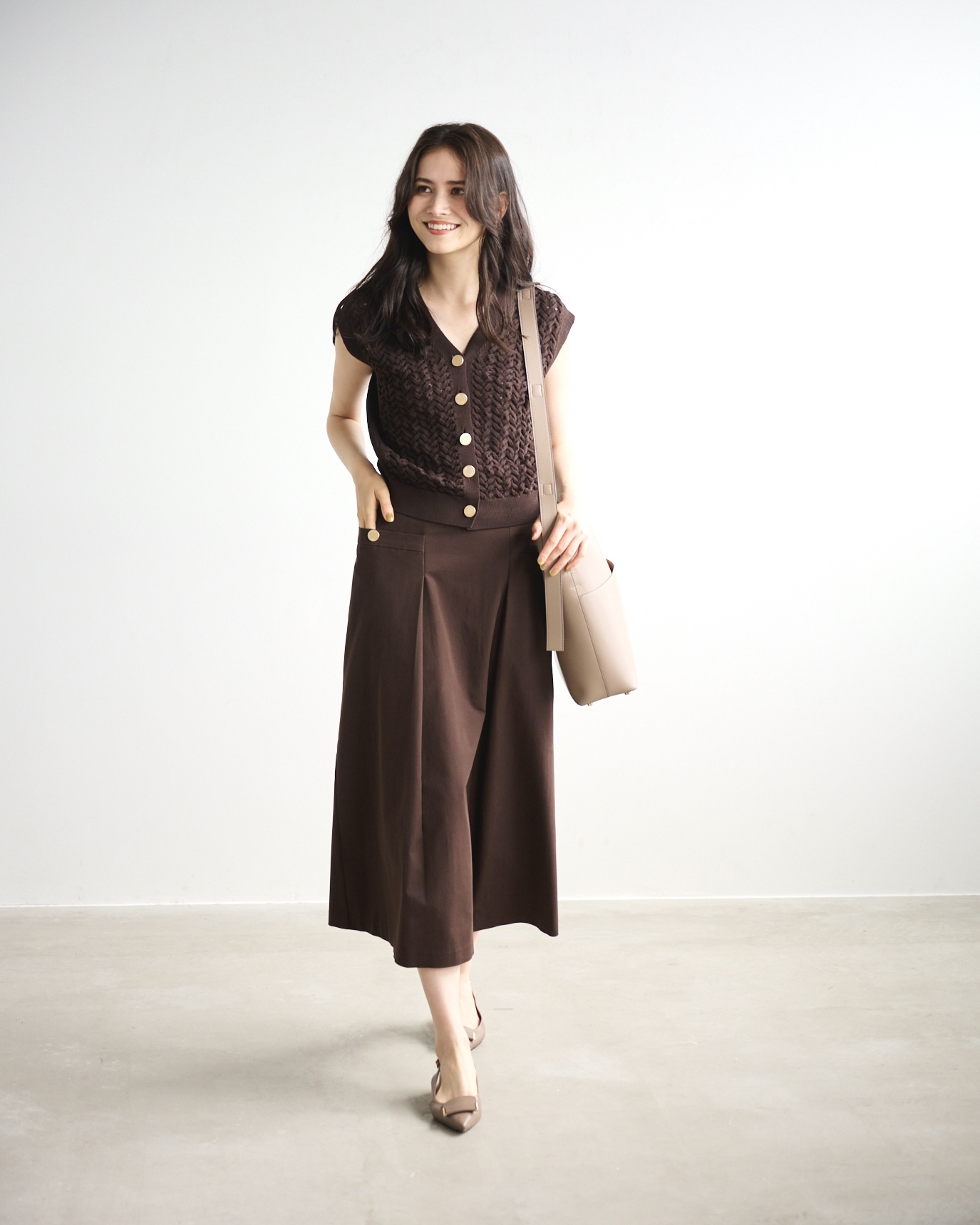 新しい季節に向けてショッピング。トレンドカラーのブラウンで秋の雰囲気を先取り。