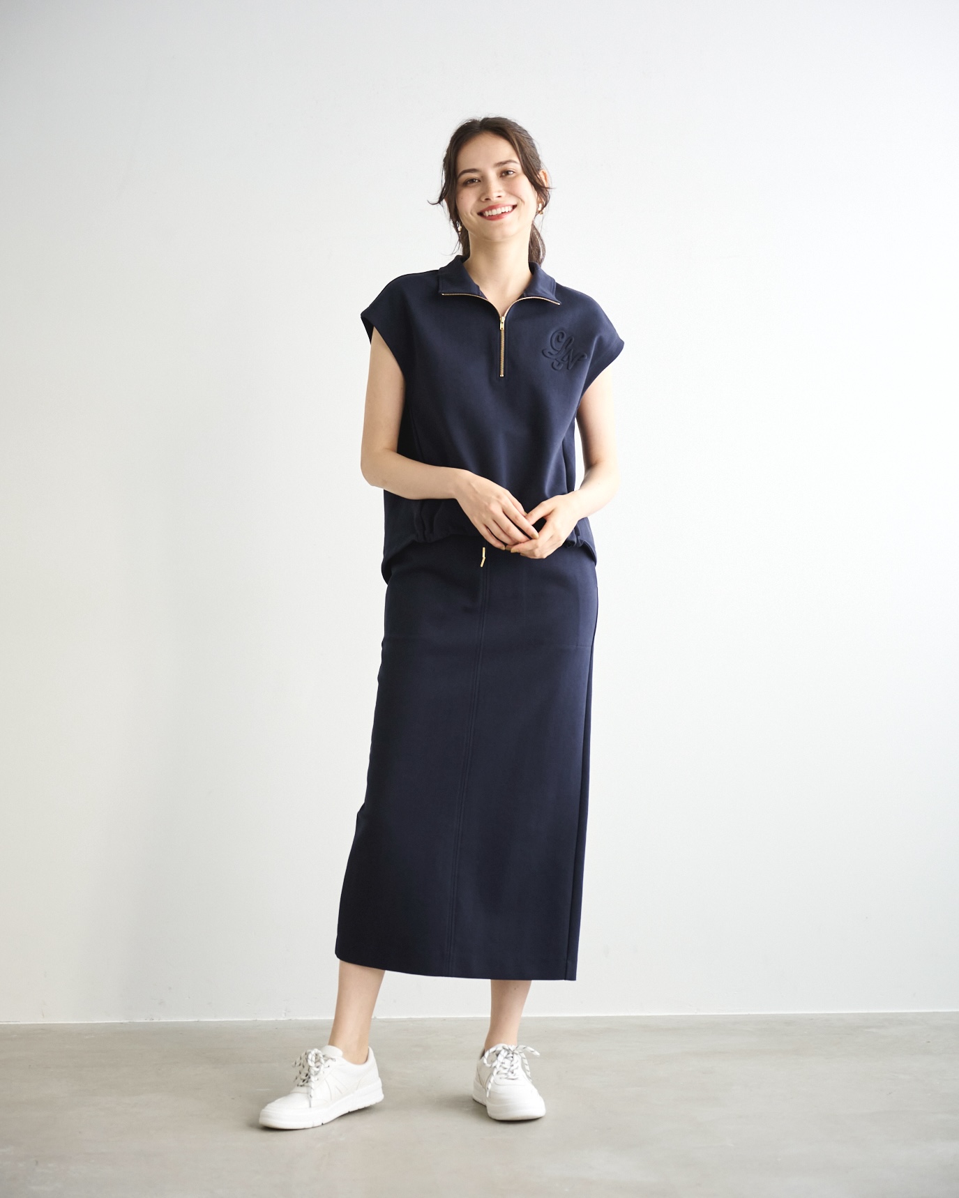 旅行や長時間の移動でも活躍するカットソーのセットアップ。上下別で着回しもできます。