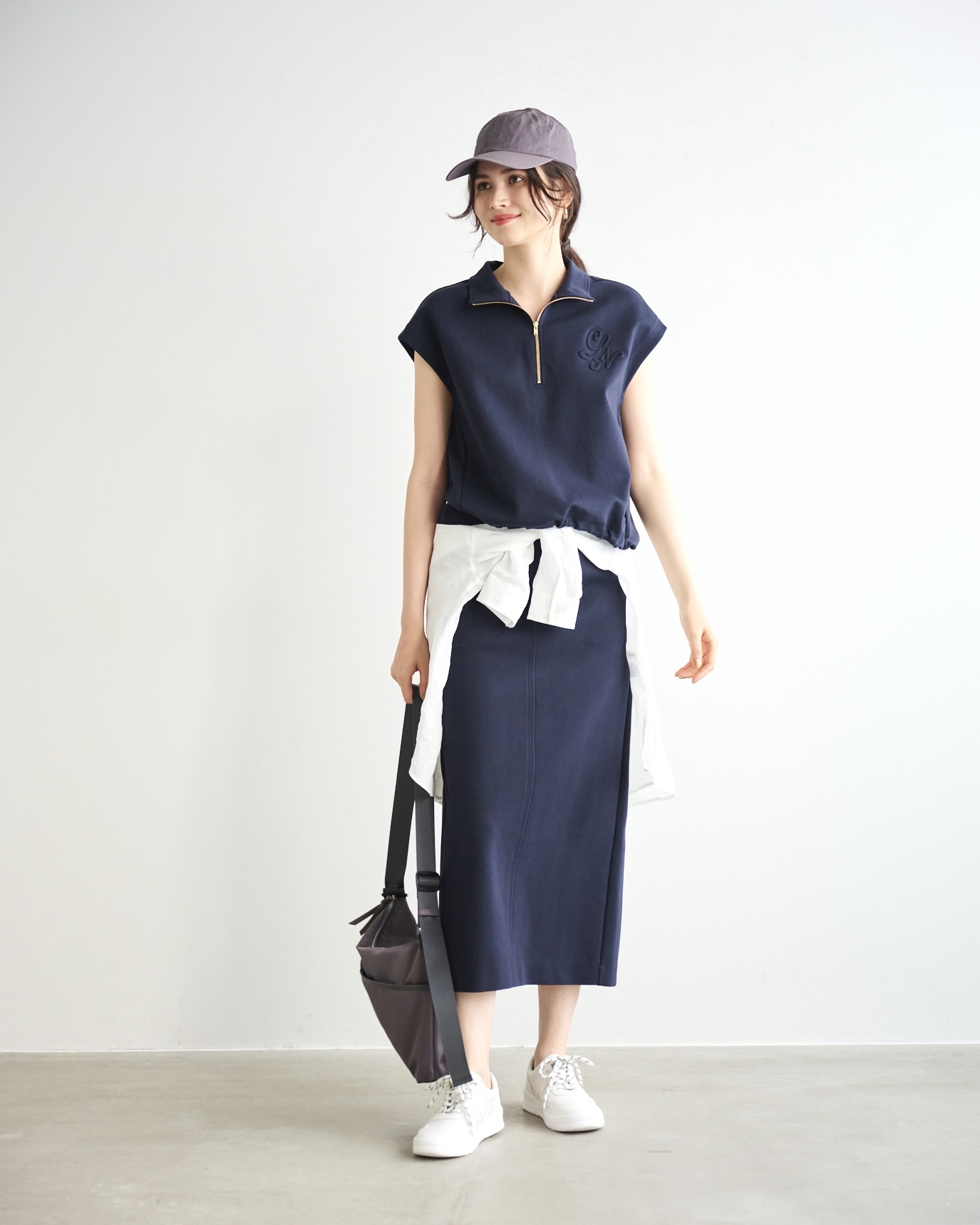 ハーフスリーブジャケットをさらりと羽織ってきちんと感をプラス。