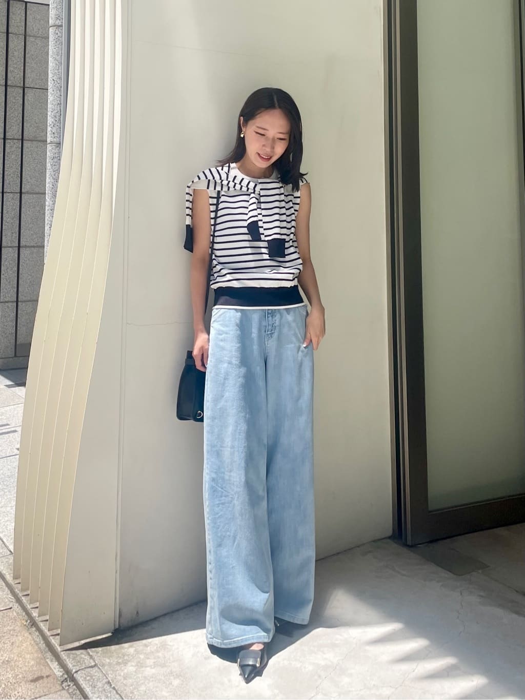 朝晩の気温の変化にも対応しやすいアンサンブルは、ボーダー柄で今年らしく。