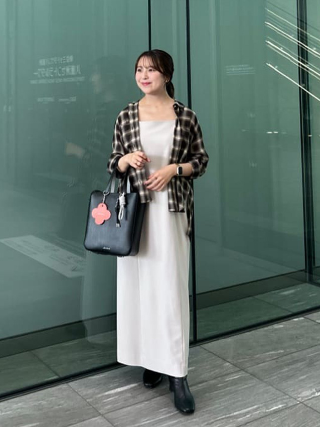 キャミワンピの上に羽織って大人上品な着こなしに。