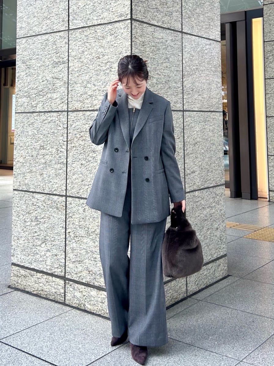 オールインワンとジャケットのセットアップスタイル。朝の忙しい時間でも迷わずにコーデが決まります。