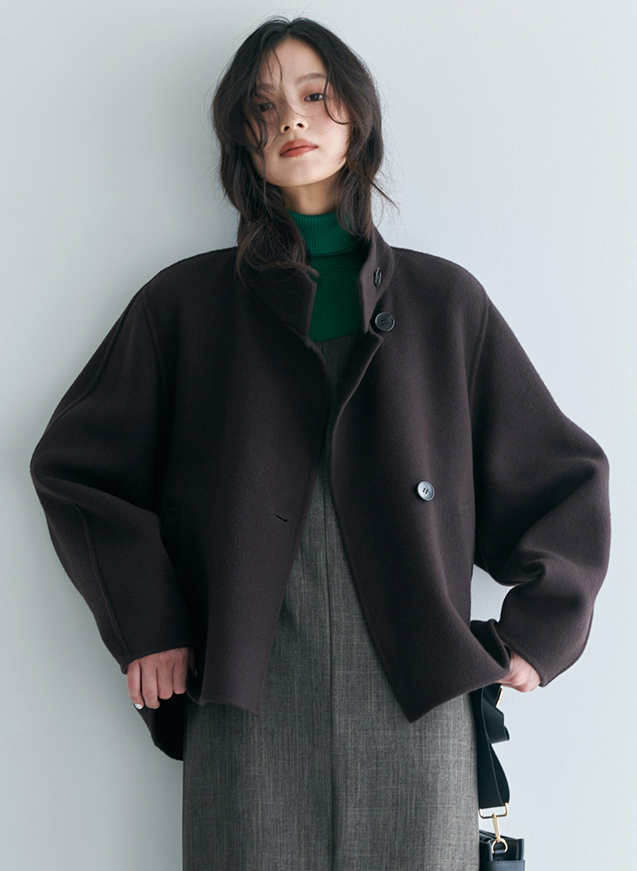 マフラーいらずで真冬も暖かいスタンドカラーコート。