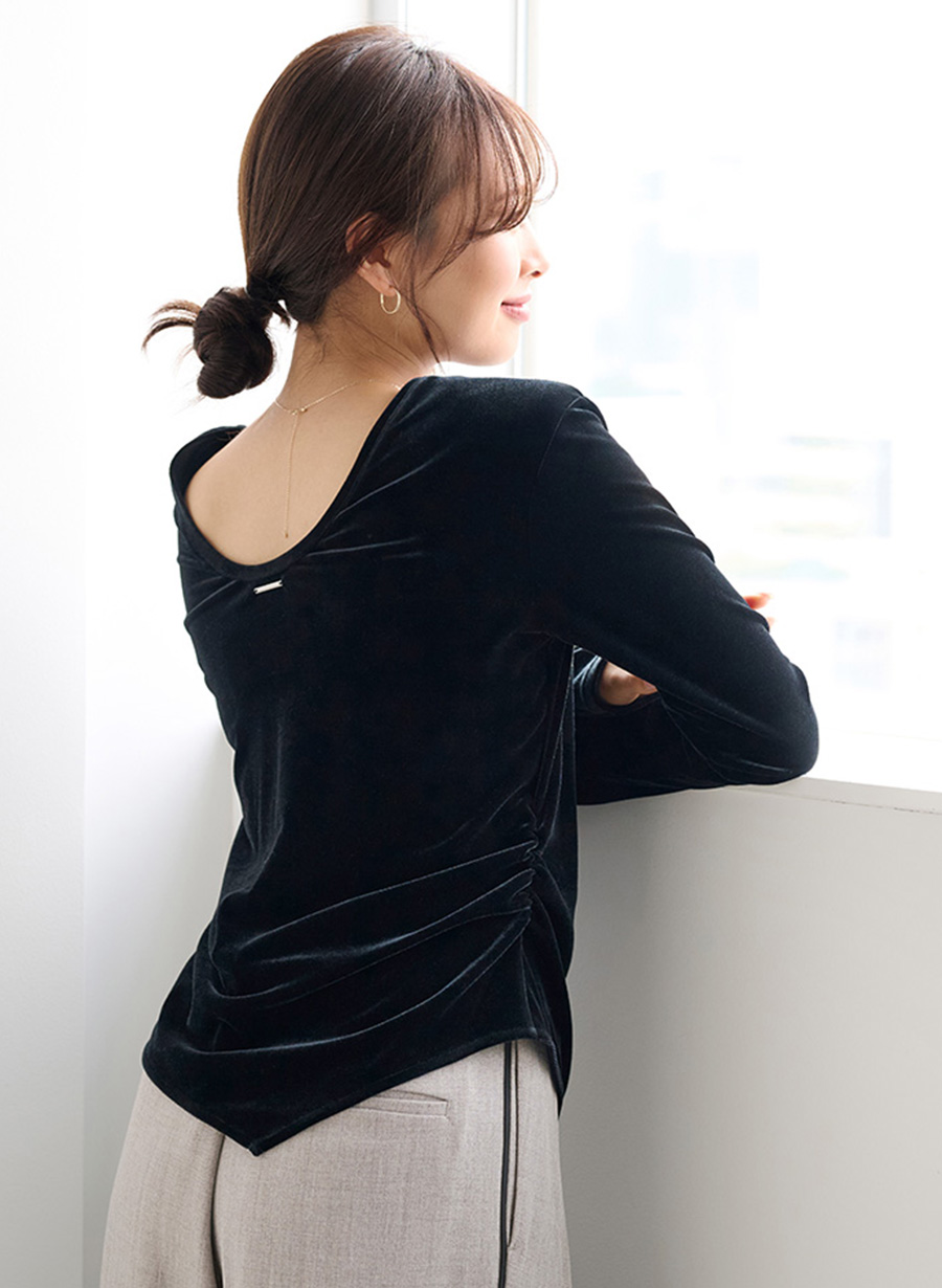 デコルテラインを美しく見せる、ベロアカットソープルオーバー。