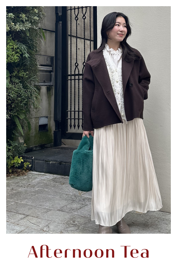 エレガントな着こなしで、優雅な午後のひと時を。
