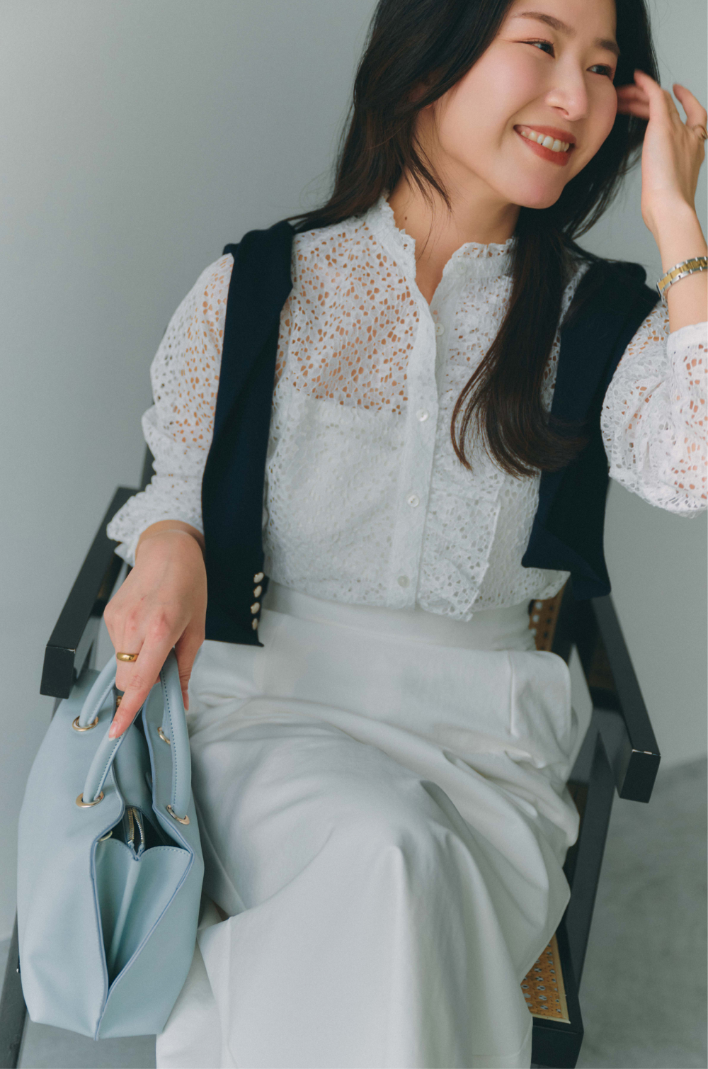 Knit vest ¥17,600 / Blouse ¥20,900