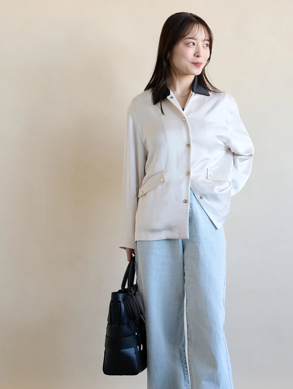 程よい光沢感が上品な、シャツタイプのブルゾンです。