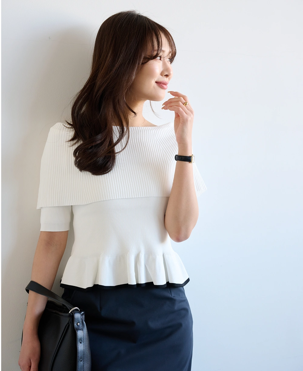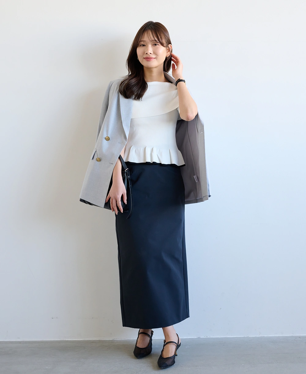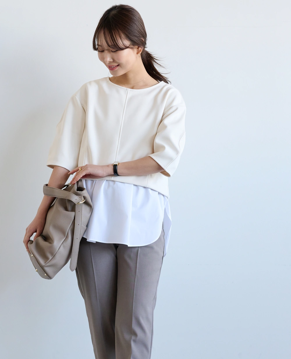 身体のラインを拾い過ぎず、お仕事の日にも着やすいトップスです。