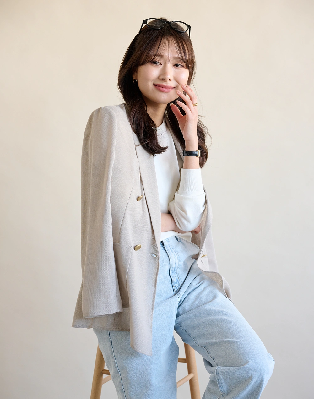 一枚羽織るだけでコーディネートが仕上がる、ダブルテーラードジャケットです。