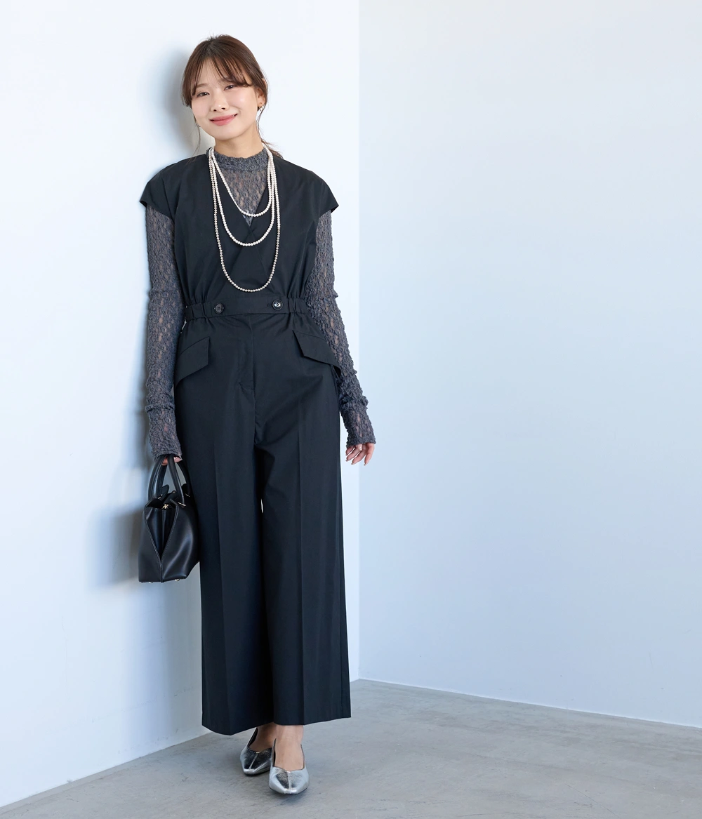 ワイドシルエットなので、コンパクトなトップスとのスタイリングがおすすめです。