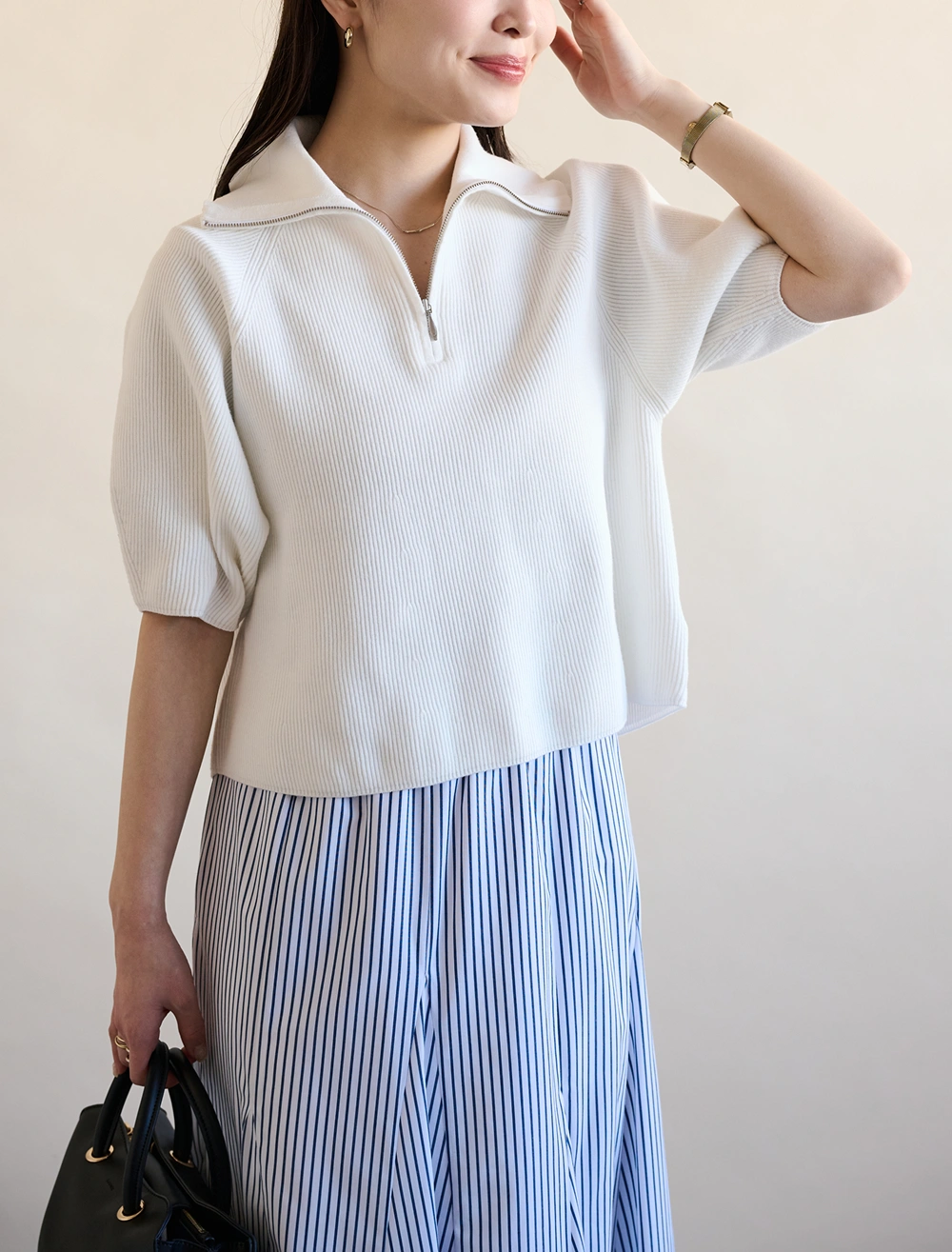 急に暖かくなる時期に向けて、五分袖トップスがあると安心です。
