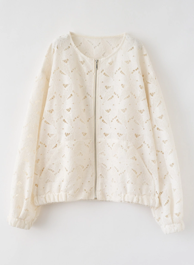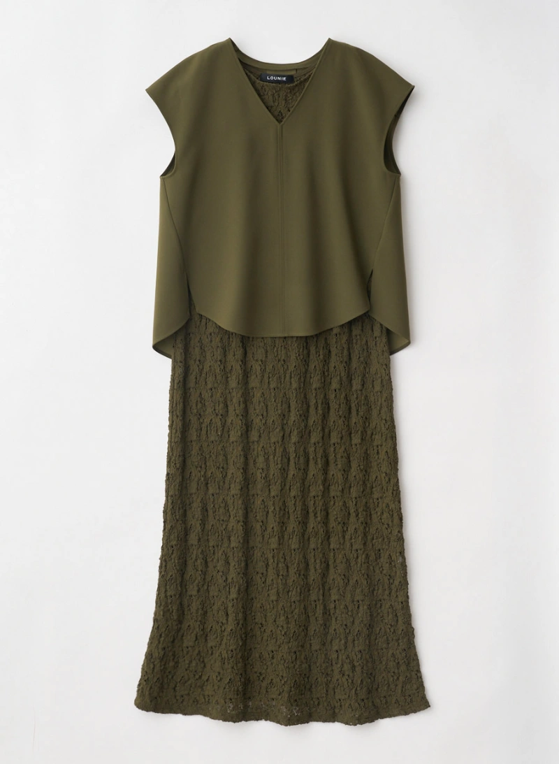 贅沢な総レースのワンピースは、レイヤードで着用できるプルオーバーがついたコンビアイテム。ヴィンテージライクなデニムジャケットで大人のこなれ感を演出。