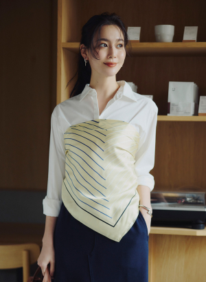 ・ニットやワンピースの下に重ねるレイヤード用としても、着こなしやすいスッキリとしたシルエットに仕上げています。