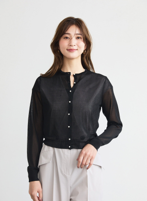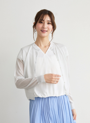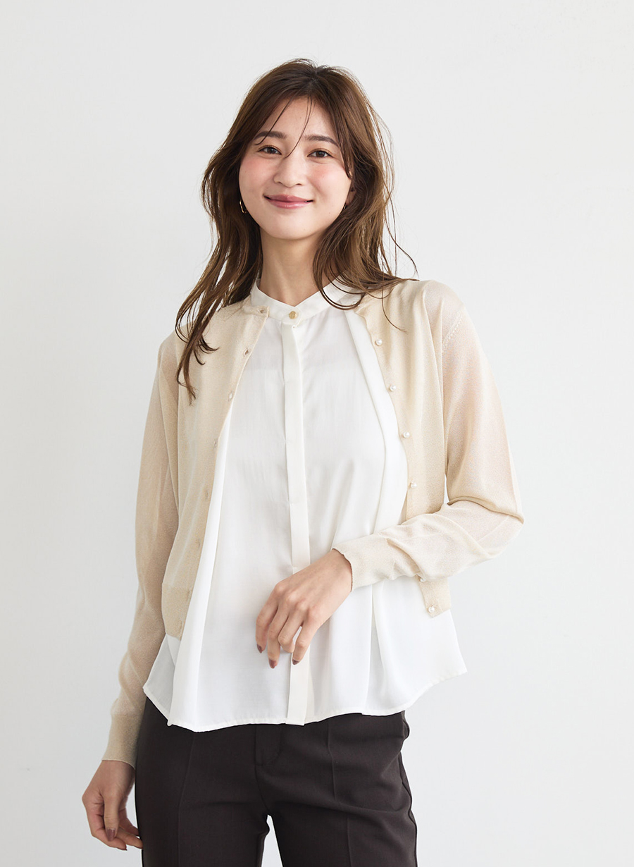 ・パールボタンがクラシカルで上品な印象。パールを活かして、トップスとして着用するのもオススメです。