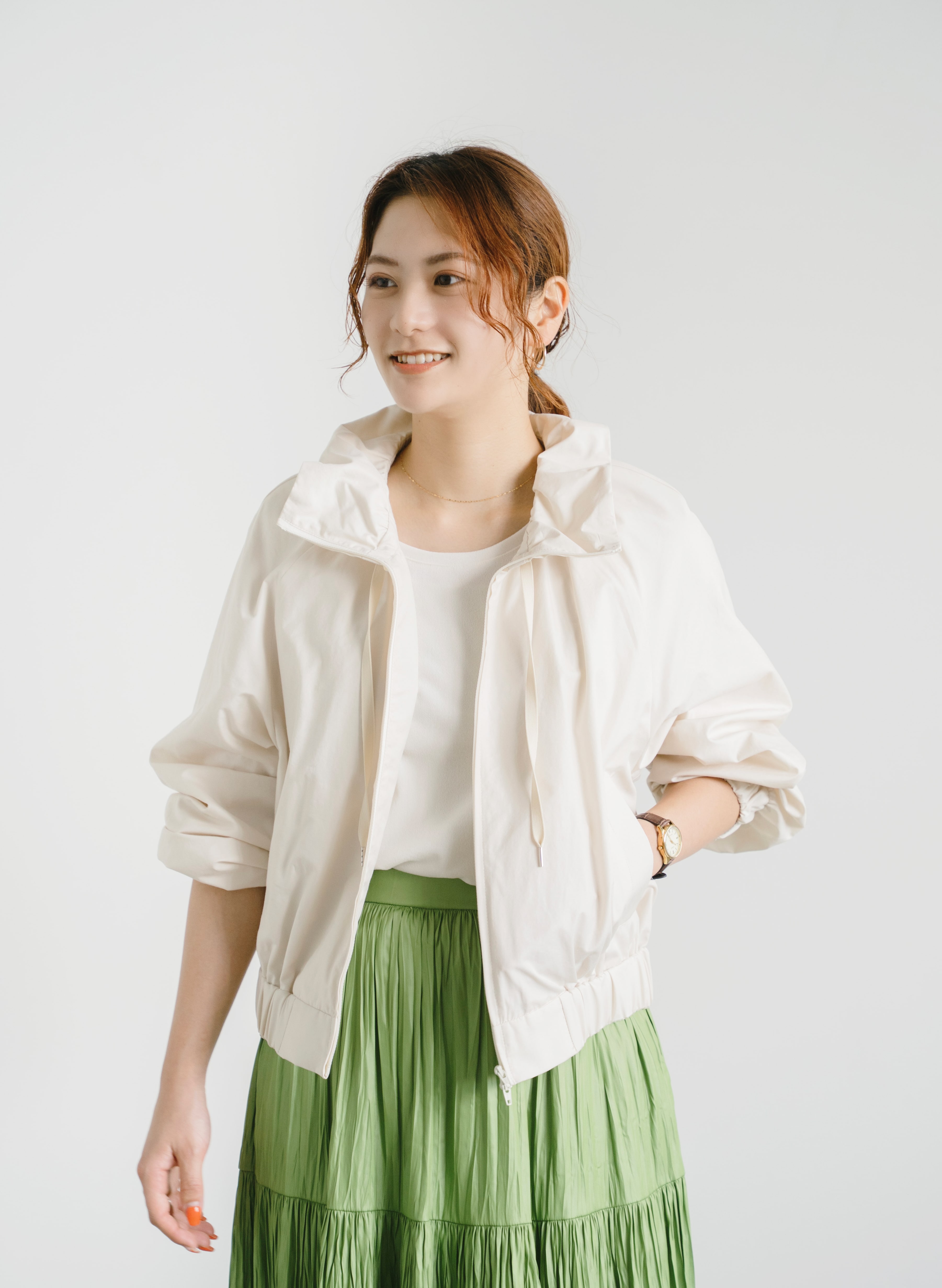 【素材感】ポリエステルとコットンが使われています🍀光沢感もありつつナチュラルな雰囲気も出せるブルゾンです✨裏地はメッシュ素材になっており、これからの春夏に向けても嬉しい素材です🌸