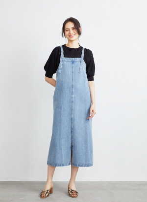 【着用感】少しウエストがくびれたAラインシルエット前スリットで足捌きしやすく、身幅にゆとりもあるので体型を拾わず華奢見えします!