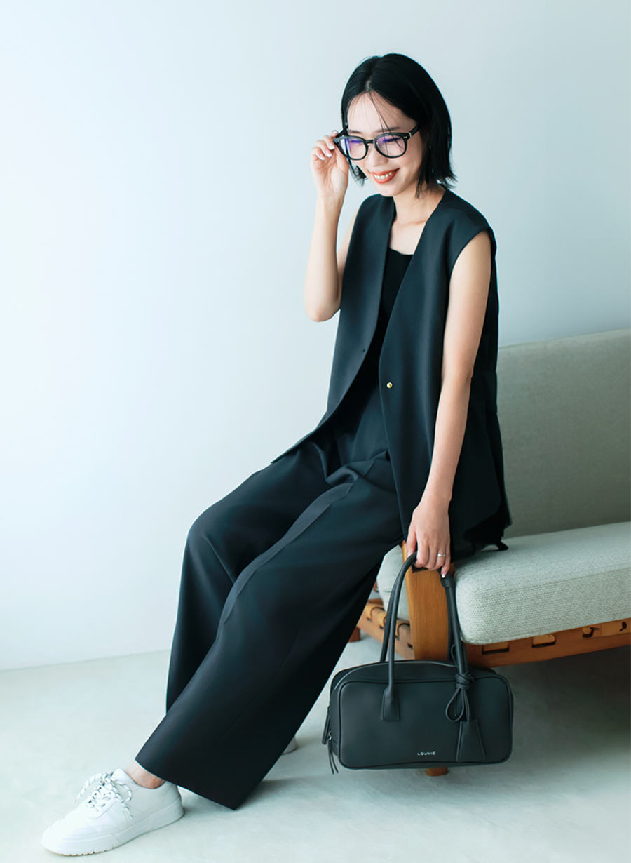 【サイズ感】少しゆとりがありインナー重ねやすい。綺麗なIラインの美シルエット。身長問わず合わせやすい着丈