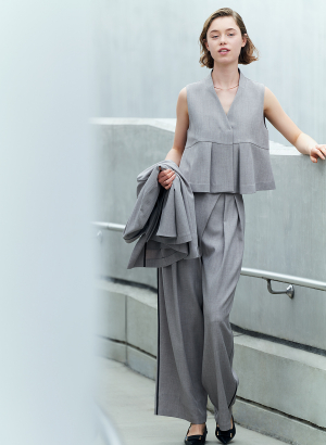 ・裾のペプラムは広がり過ぎず、甘さを抑えているので、大人っぽい鮮度のあるアイテムとしておすすめです。