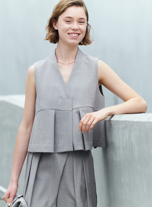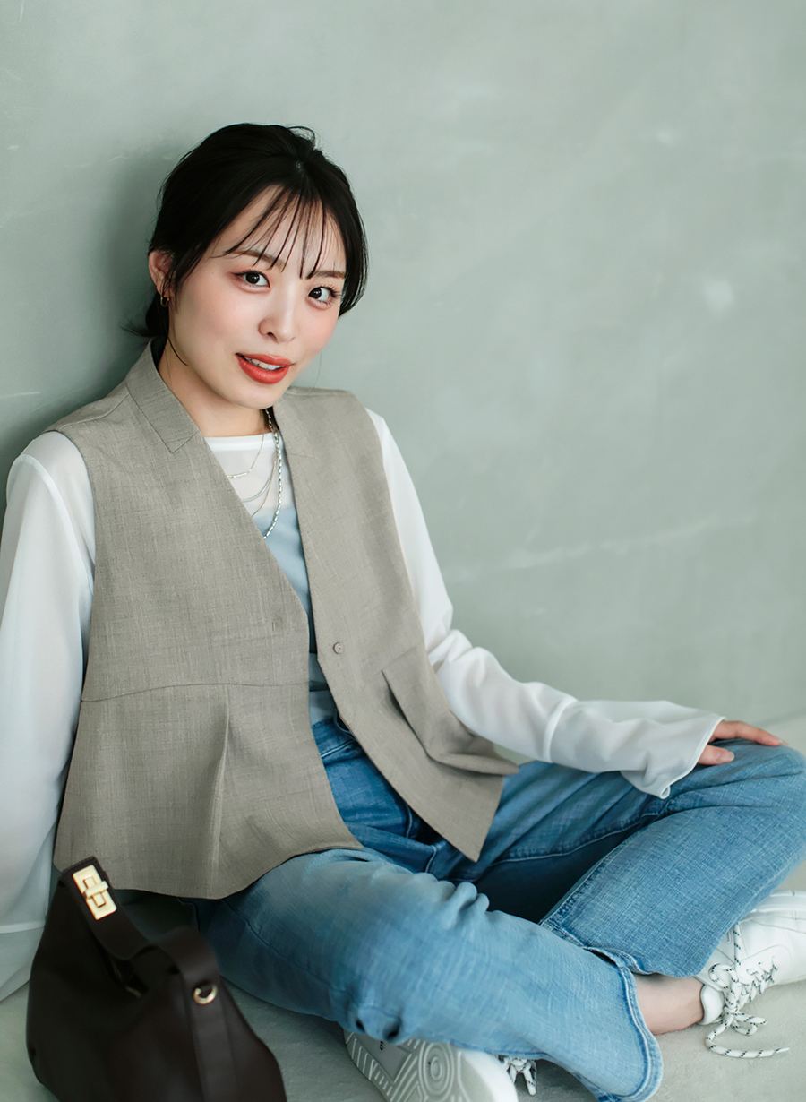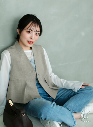 ・ショート丈×ペプラムの新鮮なデザインジレ。