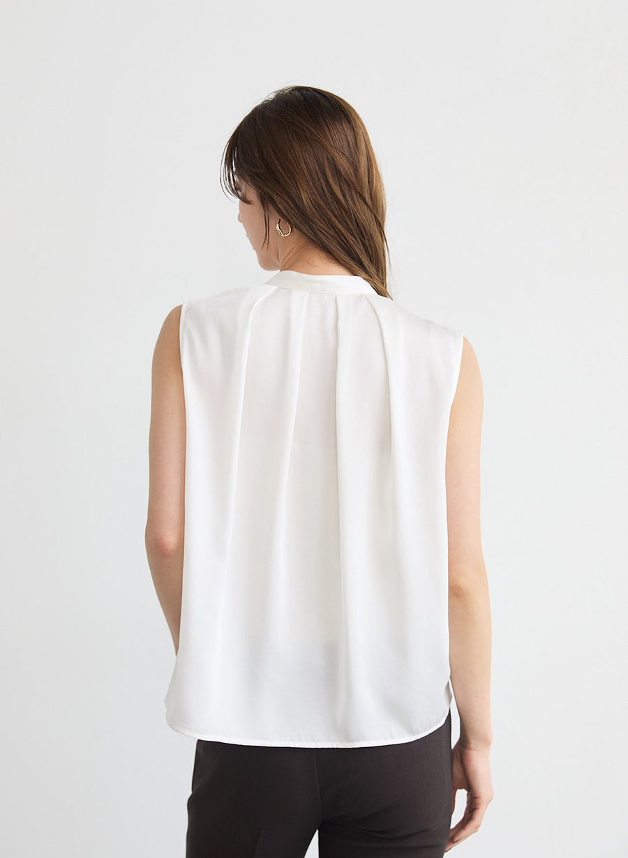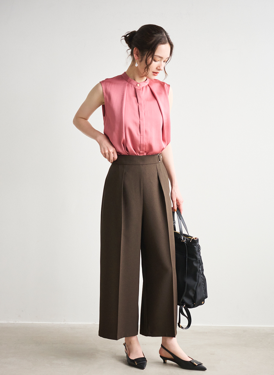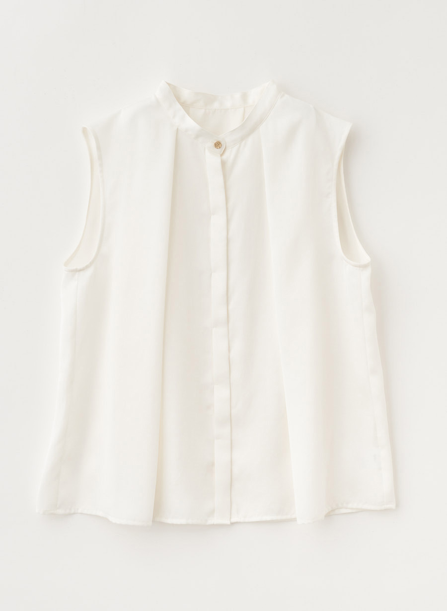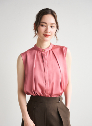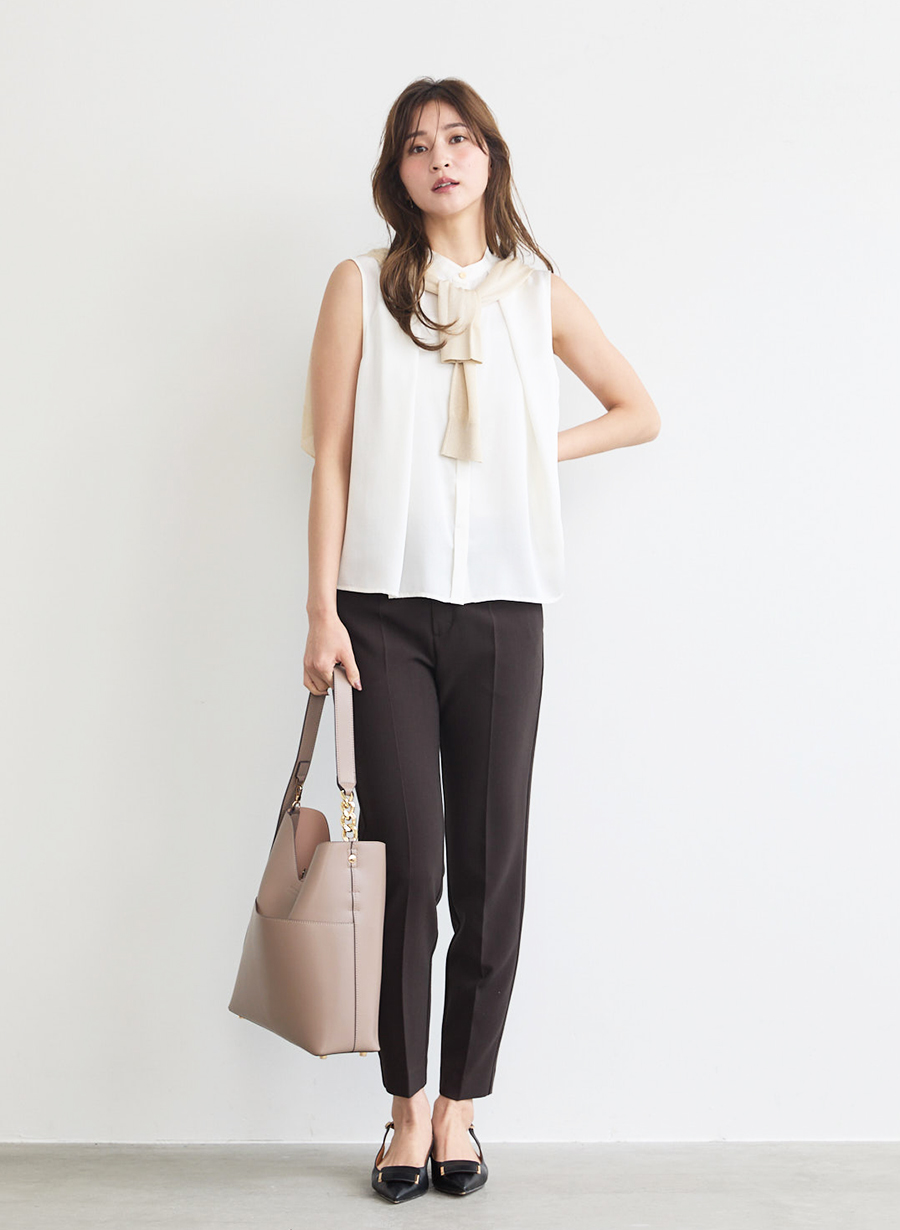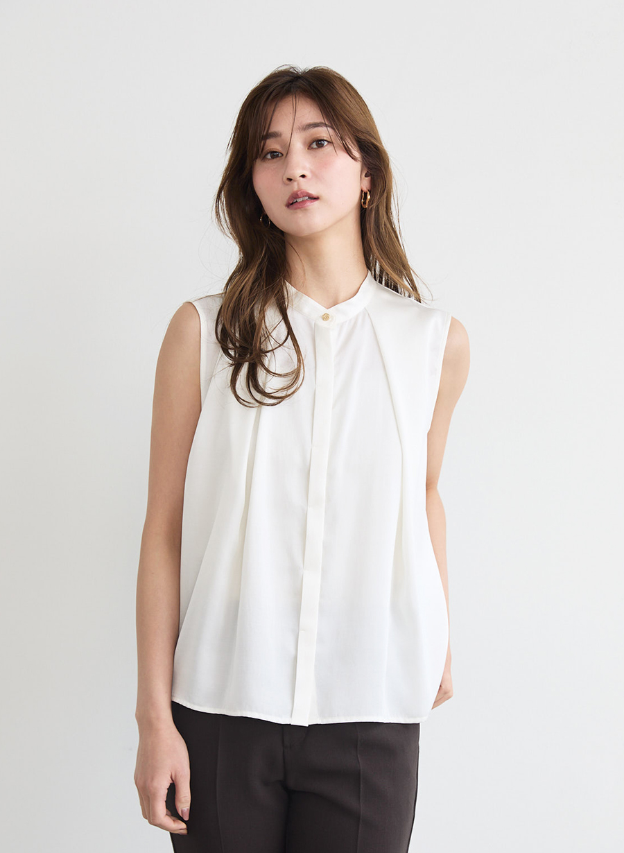 ・すっきりとしたきれい目のノースリーブブラウス。