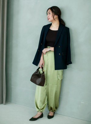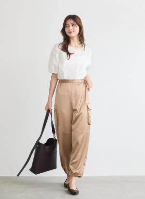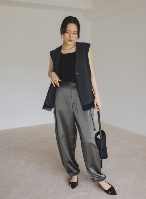 ・ニュアンスカラー×カーゴデザイン×サテンの艶感がトレンド要素満載。履くだけで決まる、持っていて頼りになる一枚。