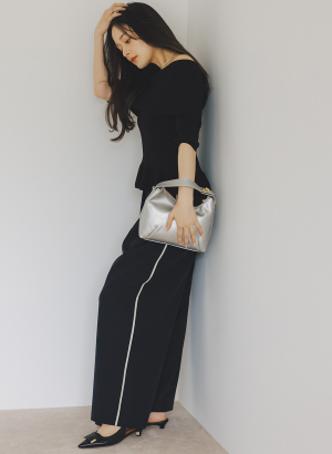 【着用感】体のラインを拾わず美シルエット。サイドラインがお洒落でトレンドstyleを楽しめる。全型素敵♡set upでおすすめです!