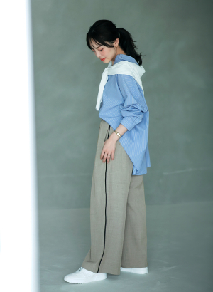 ・肌離れの良い生地感と裏地なしの仕様で、汗ばむ時期でもストレスなく軽やかに履いていただけます。