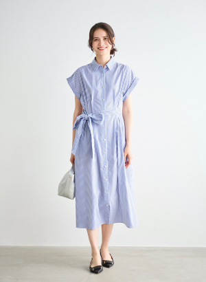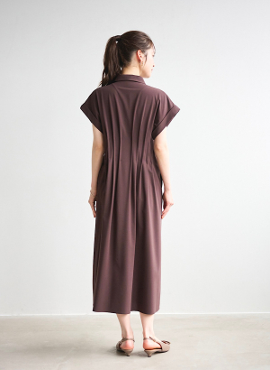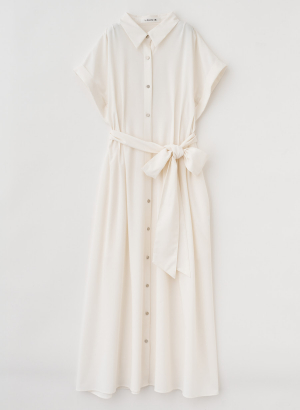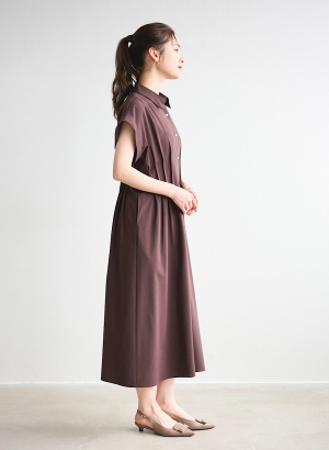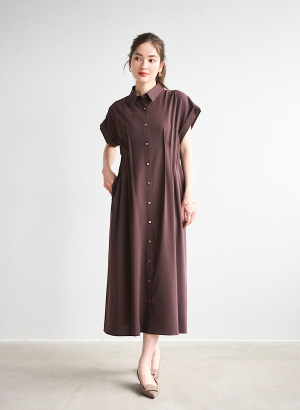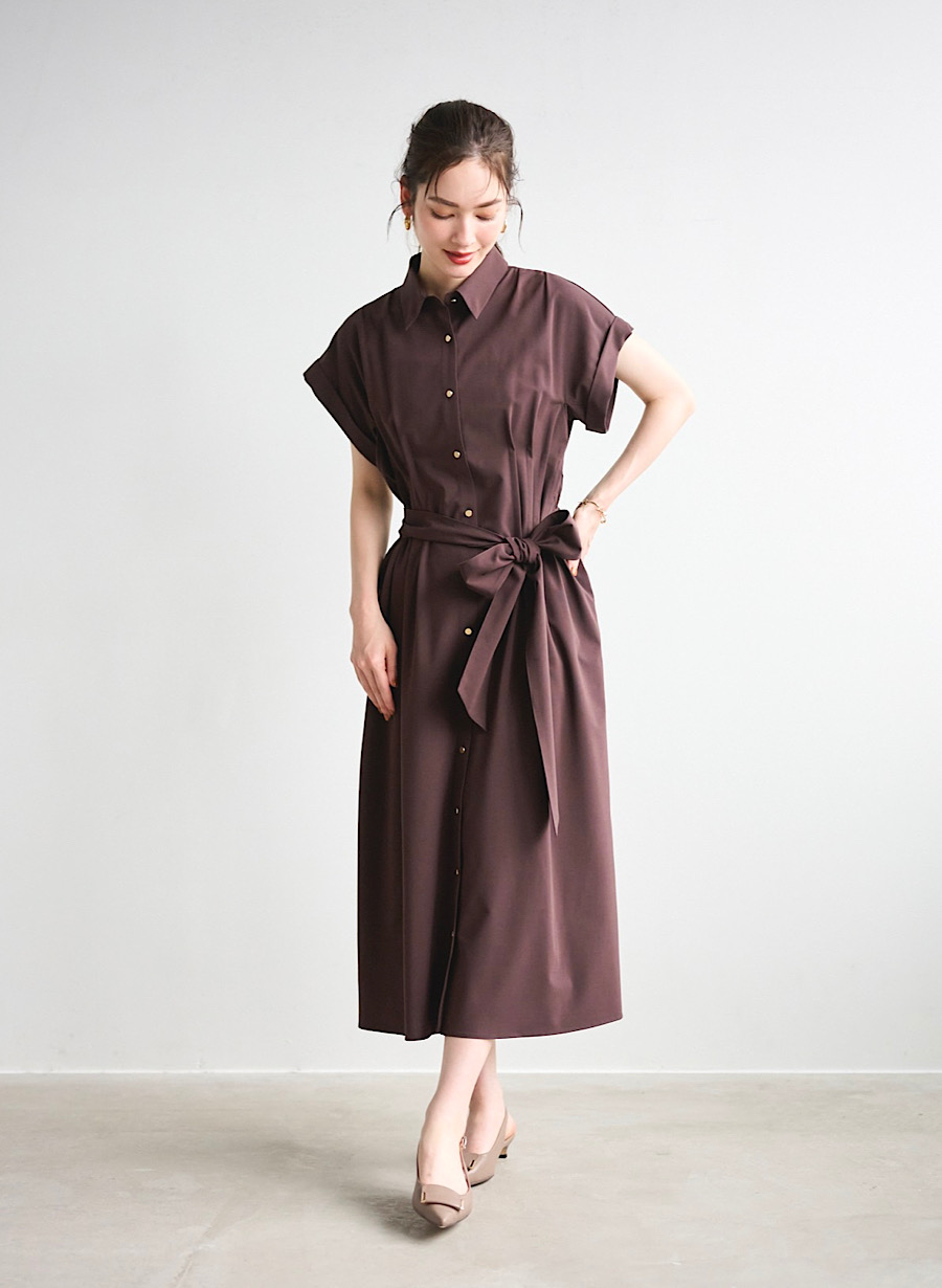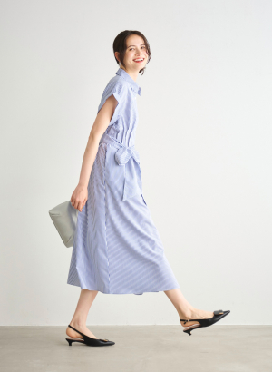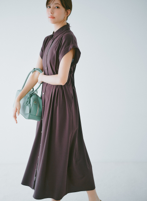 ・ウェスト部分にタックを施し、すっきりとしたシルエットのシャツワンピース。