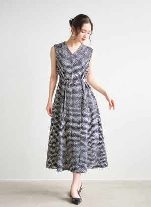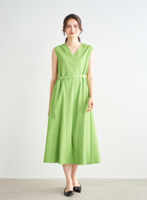 ・女性らしいVネック開きで、大人が着やすい程良いAラインシルエットがポイント。