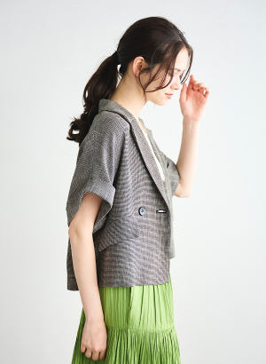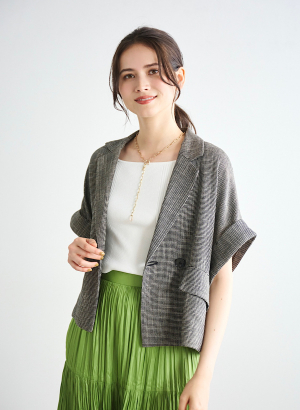 ・ゆとりのあるサイズでさっと羽織れるハーフスリーブジャケット。