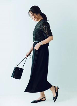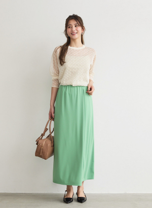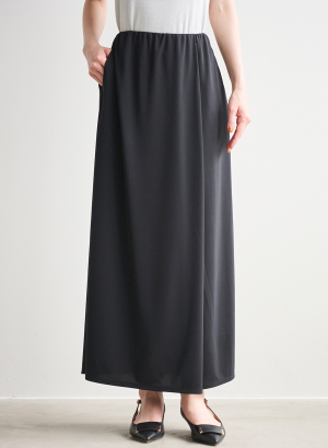 【着用感】ラップ風になっていて、スリットがないので座る時も安心です。重さもあまりなく履き心地がとても良いです。シンプルなのでトップスを選ばず着まわしできるのもポイントです。