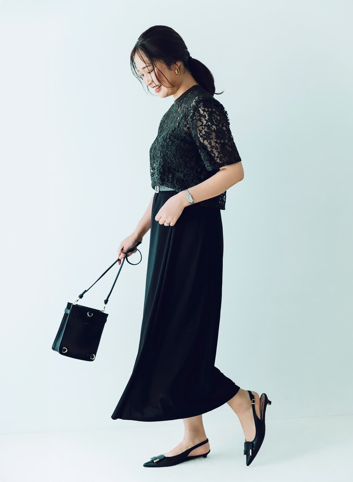【着用感】ラップ風デザインでスリットなしでも足さばきスムーズ。ポケット付きで機能性もあり、デイリーからお出かけまで活躍します。