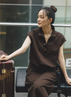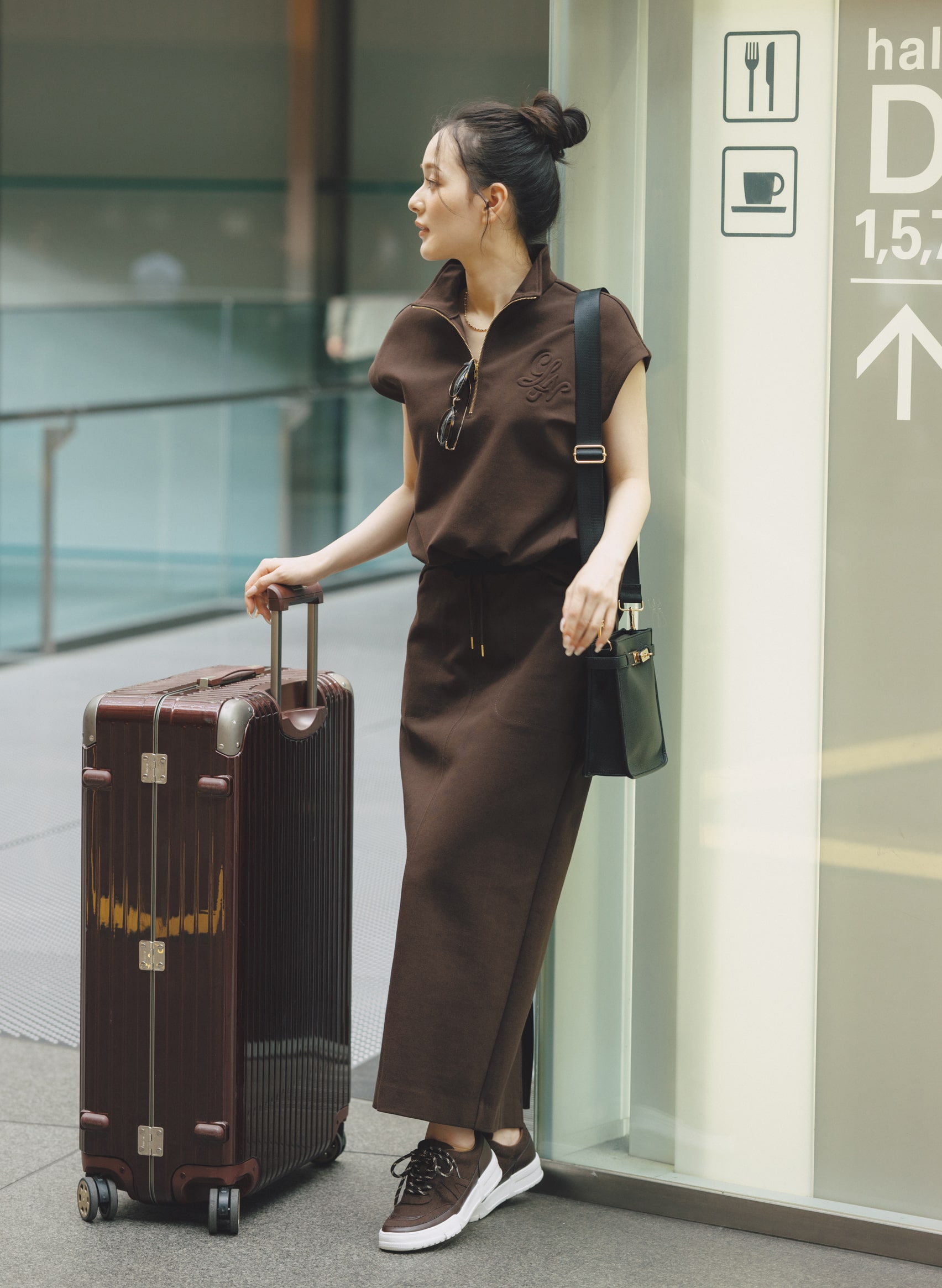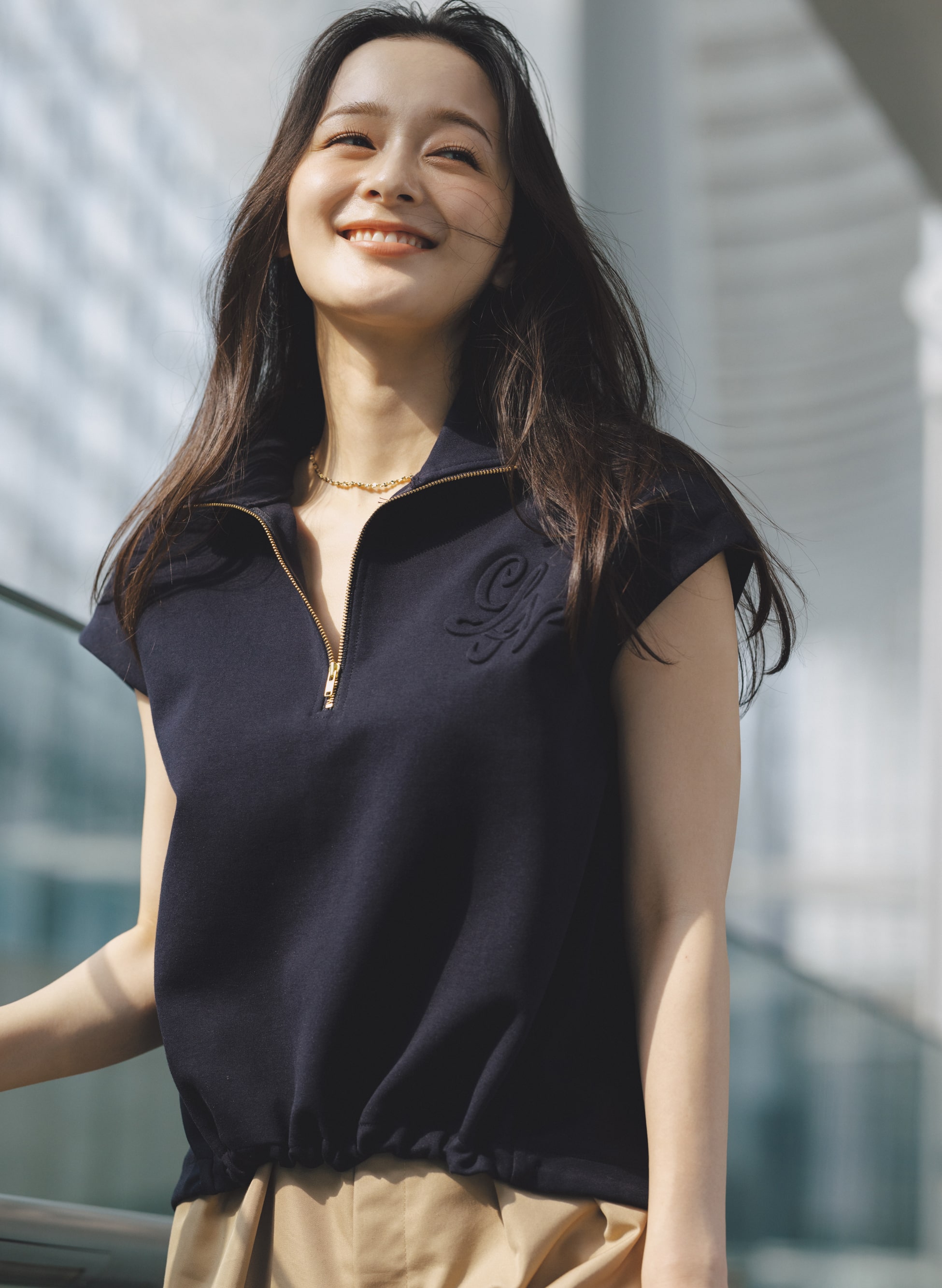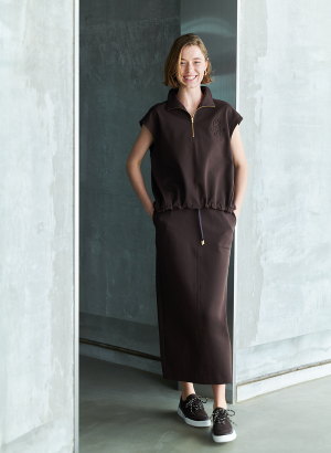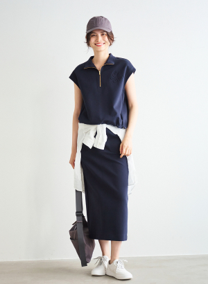 ・トレンドのハーフジップとナロースカートがセットになった、おすすめアイテムです。