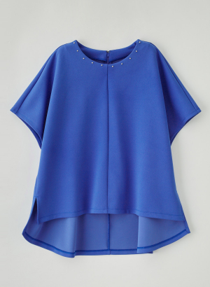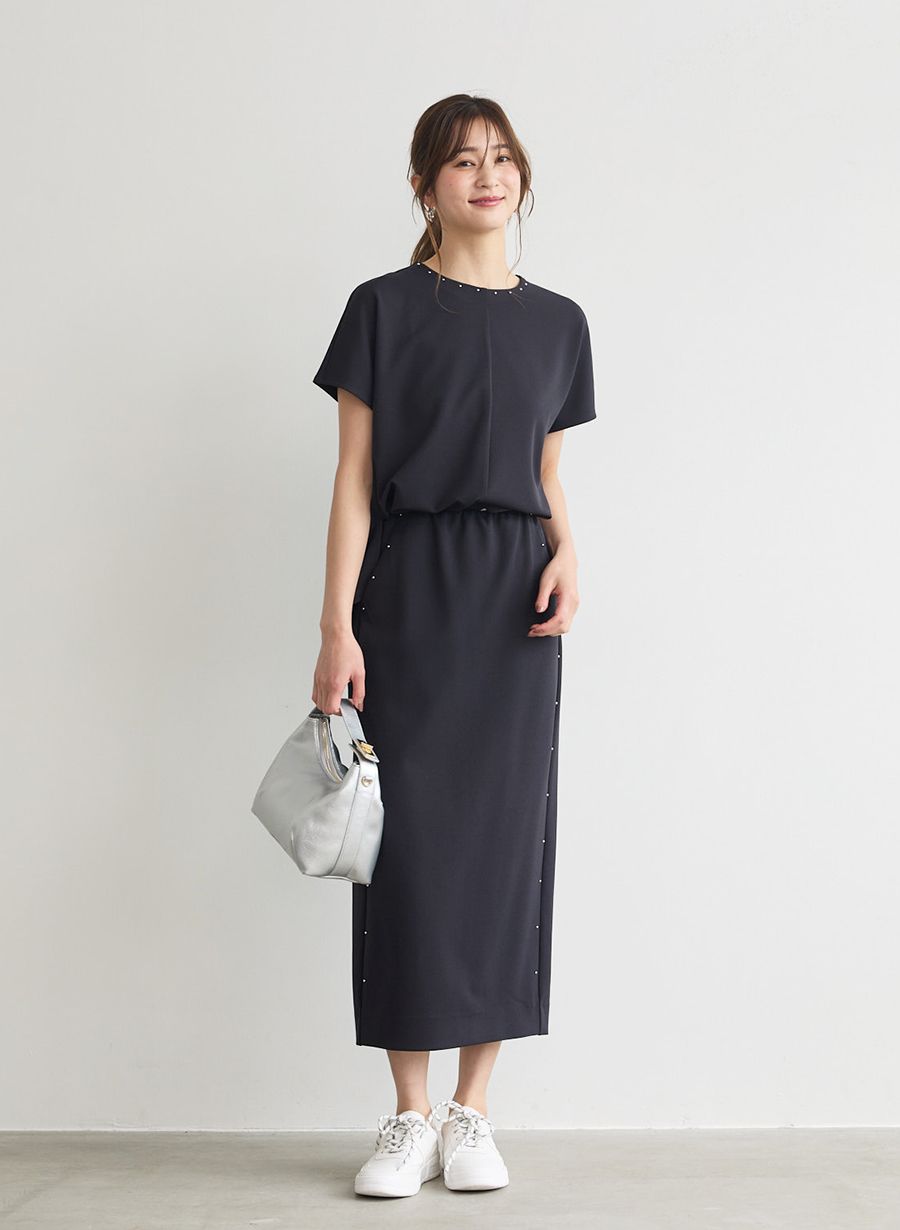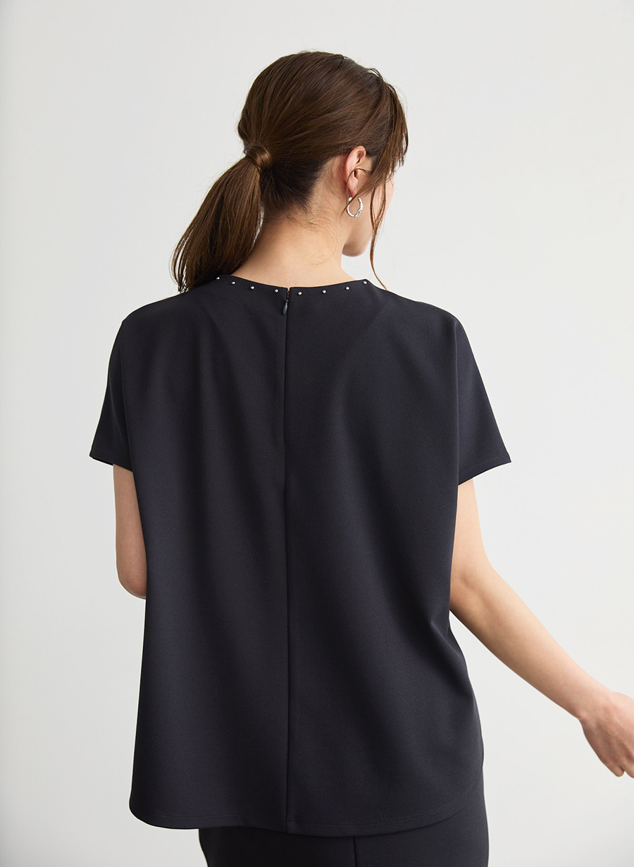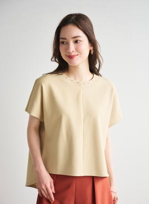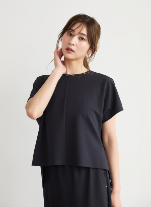 ・襟ぐりの小ぶりなスタッズがデザインポイント。