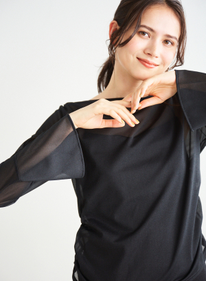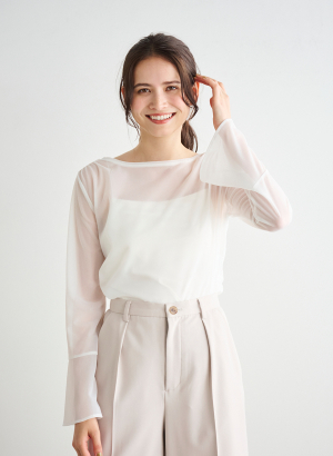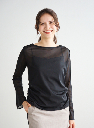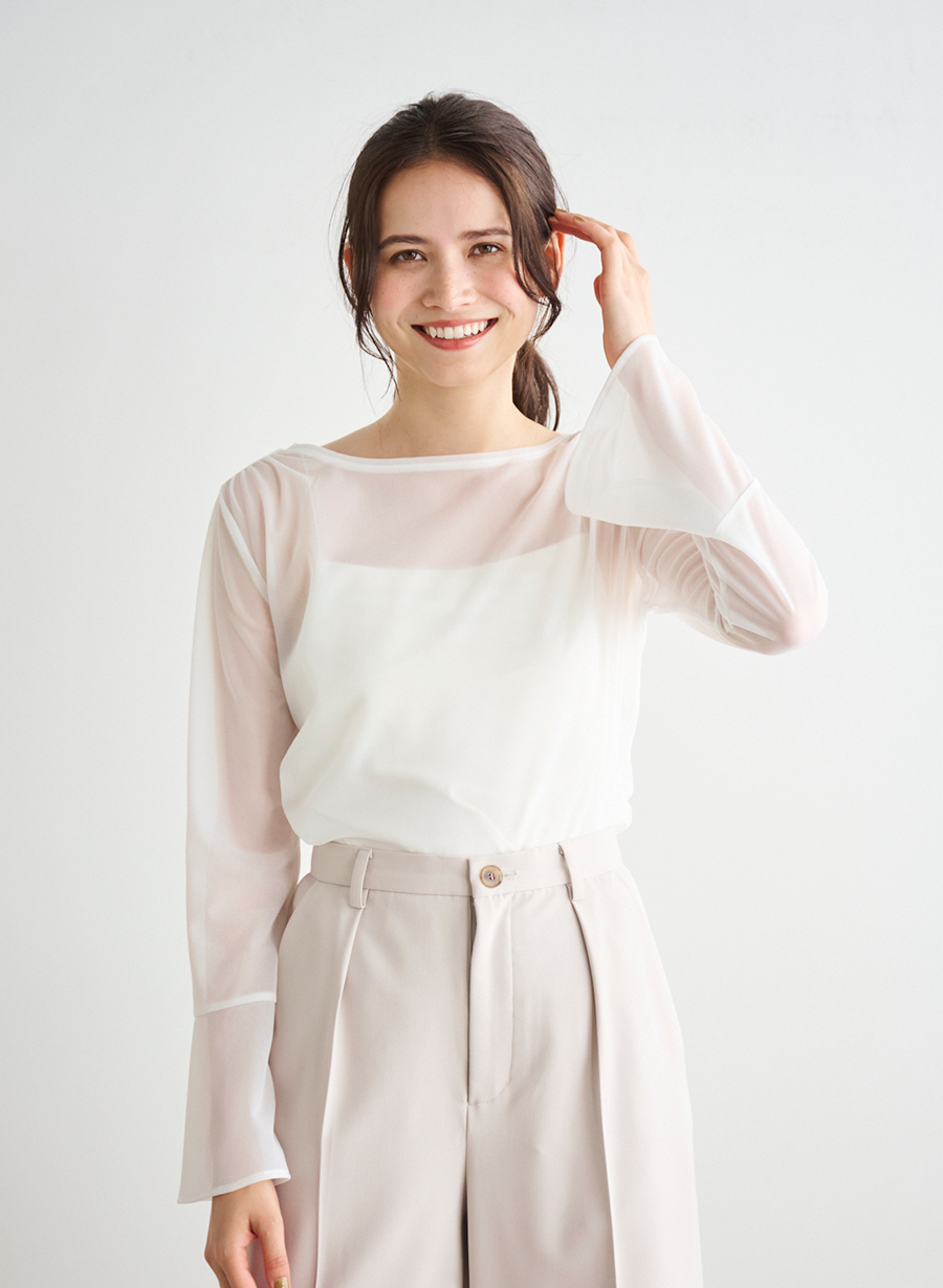 ・浅めのボートネックで、開きすぎない女性らしい首周りに仕上げています。