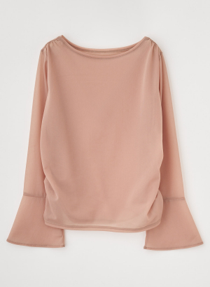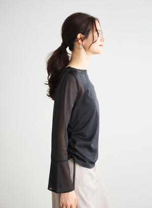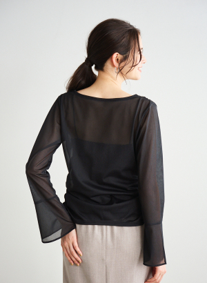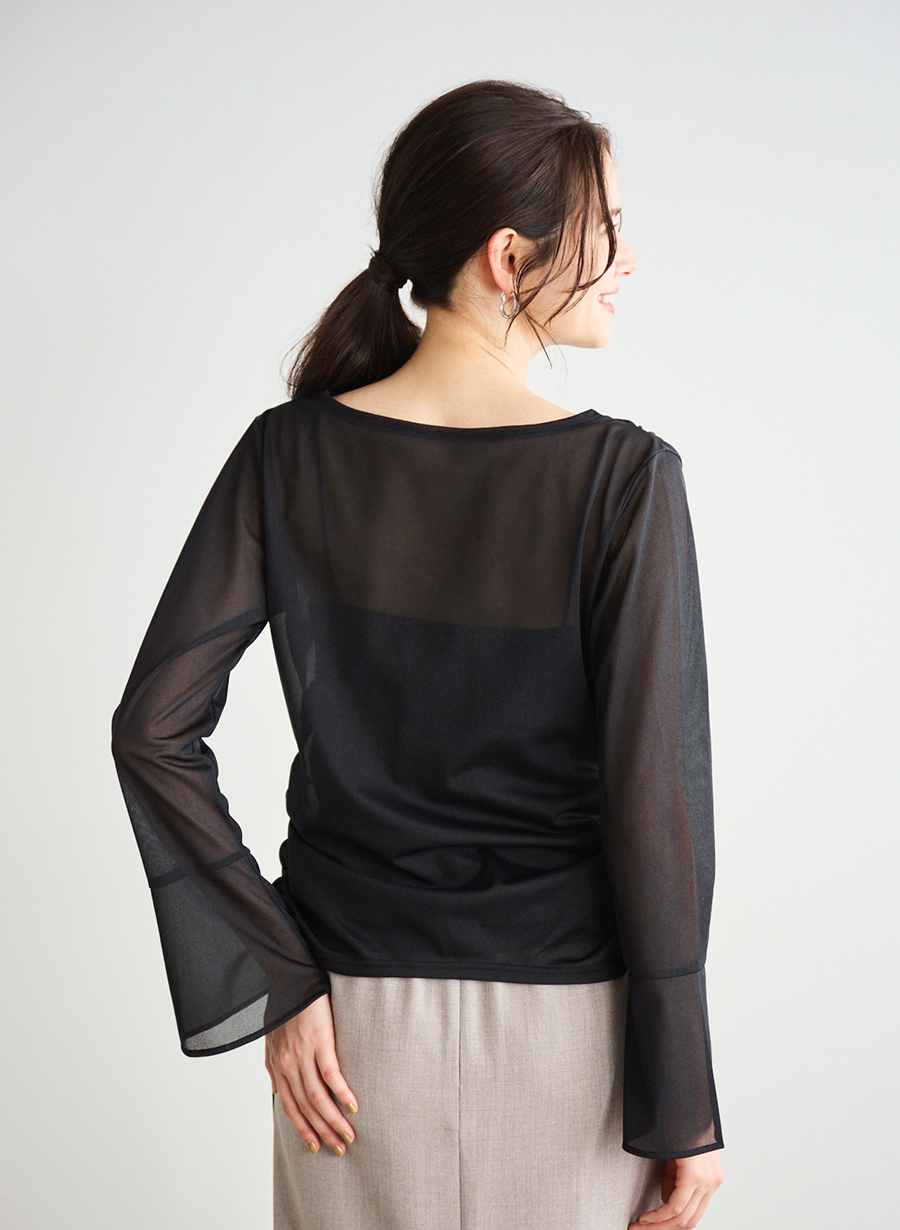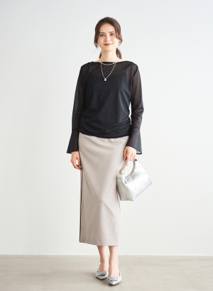 ・袖口はベルスリーブで、フェミニンな印象をプラス。
