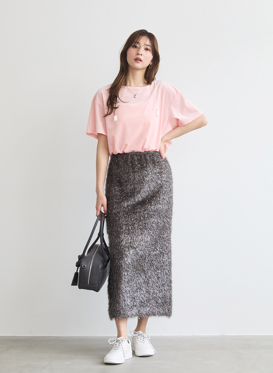 ・Tシャツらしくラフに着ても、品よくエレガントな印象にまとまる一枚。