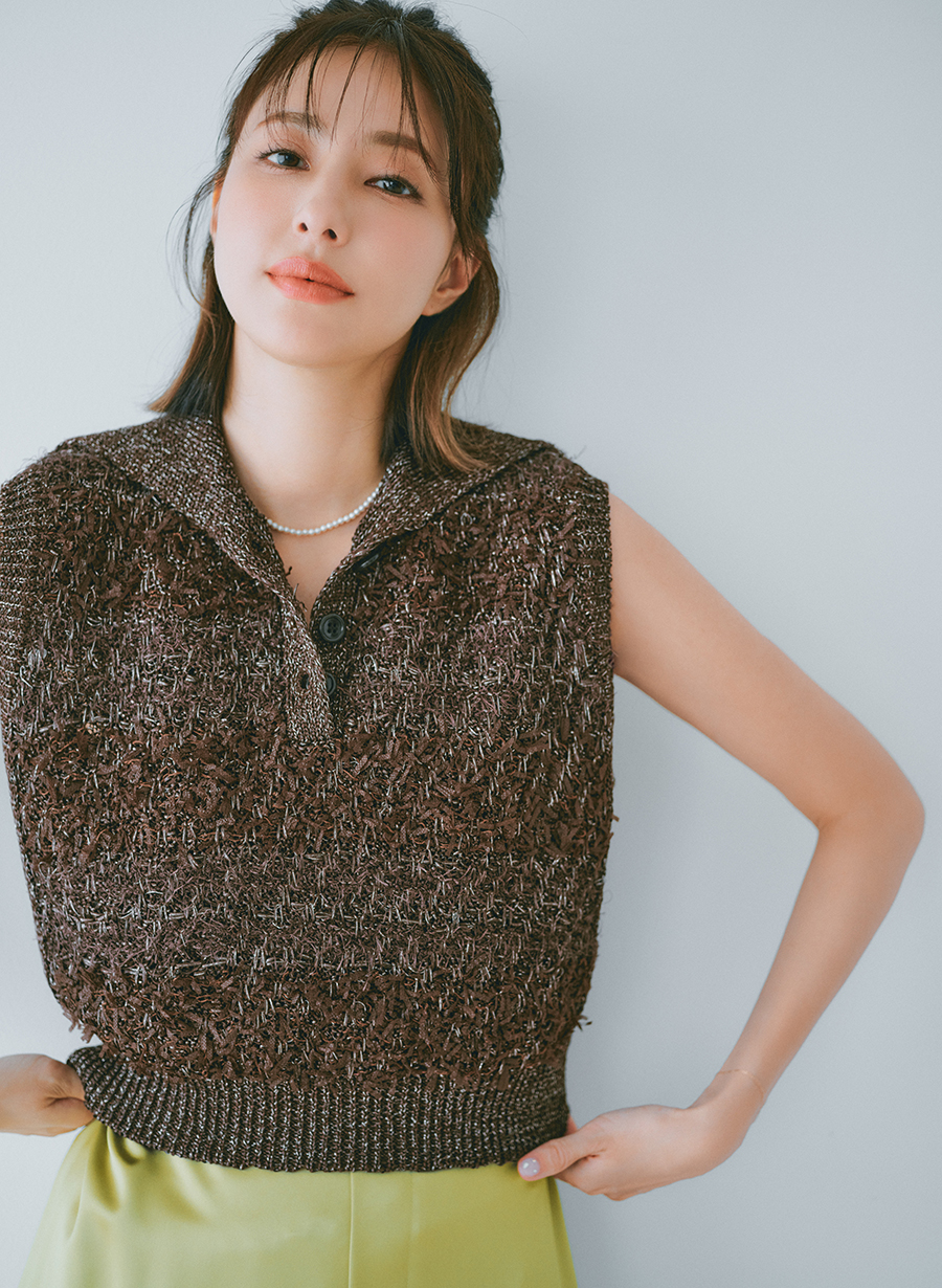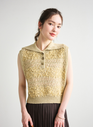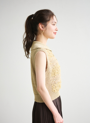 ・今季らしい襟付きのニットをファンシーヤーンでつくりました。