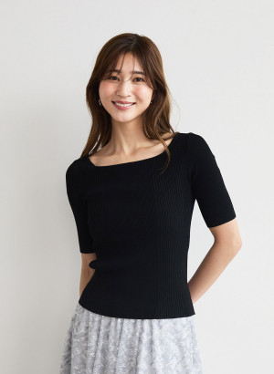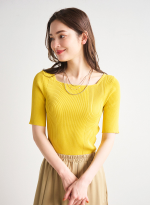 2種類のリブ組織を組み合わせ編み立て、アクセントにしています。 UVカットの機能性も嬉しいポイント。