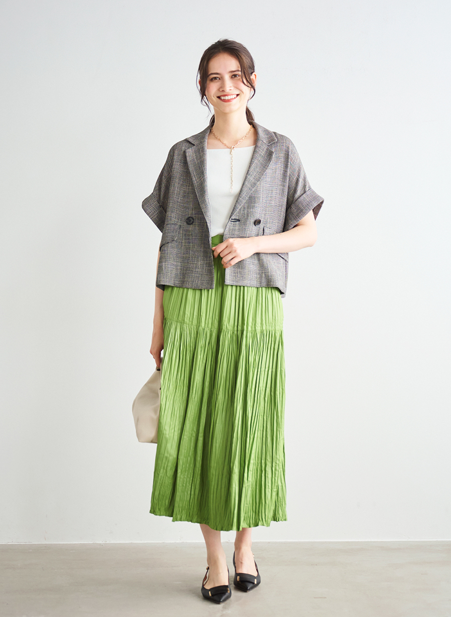 ・伸縮性の高い素材なので、身体のラインをすっきりと見せつつ、安心感のある着心地が特徴。