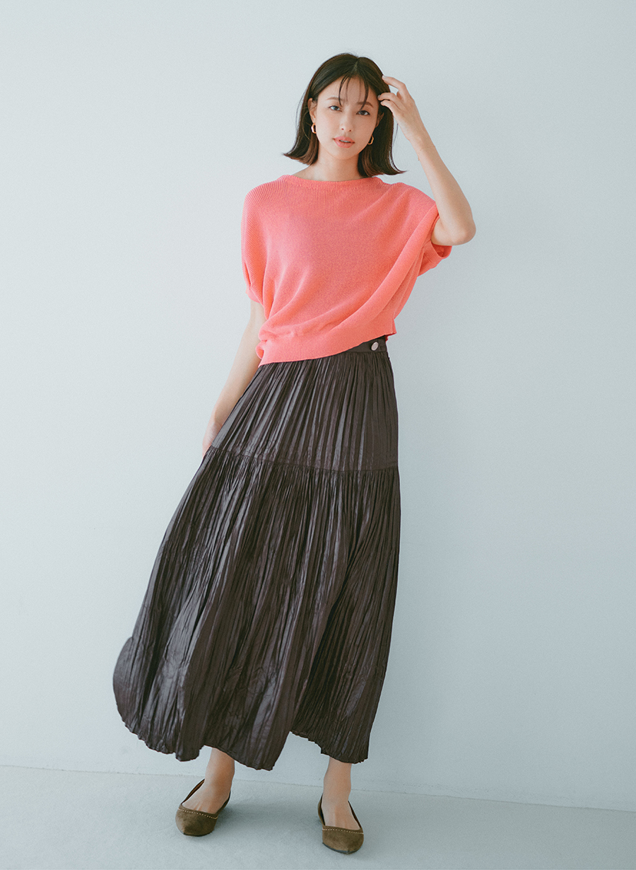・たっぷりとしたドルマンシルエット×ショート丈。体型カバーしつつ、スッキリとした印象で着こなせます。
