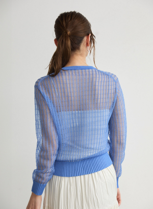針抜きリブにアイレットを織り交ぜ、表情感があり、清涼感のある編地に仕上げました。