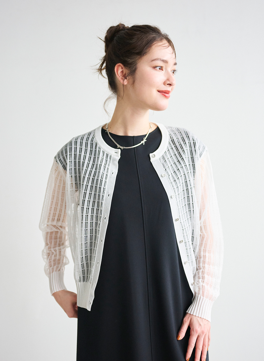 ・見た目にも涼しく華やかなコンパクトカーディガン。