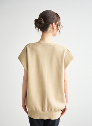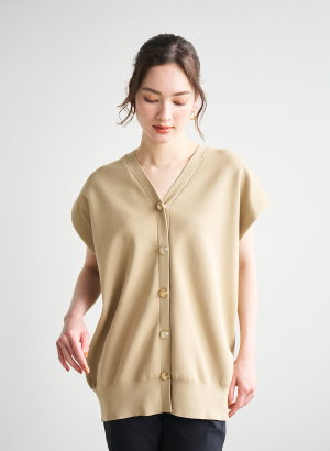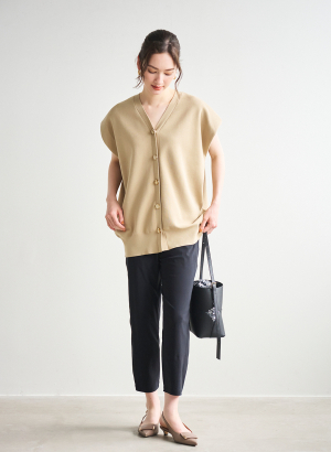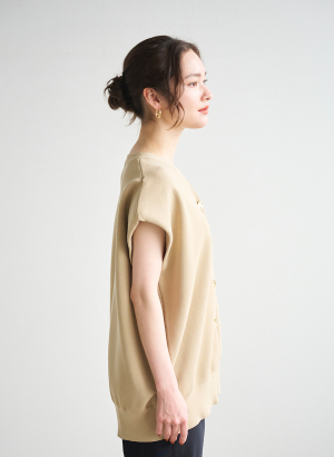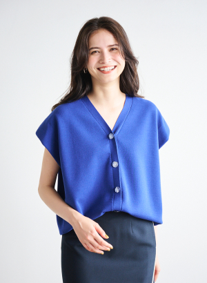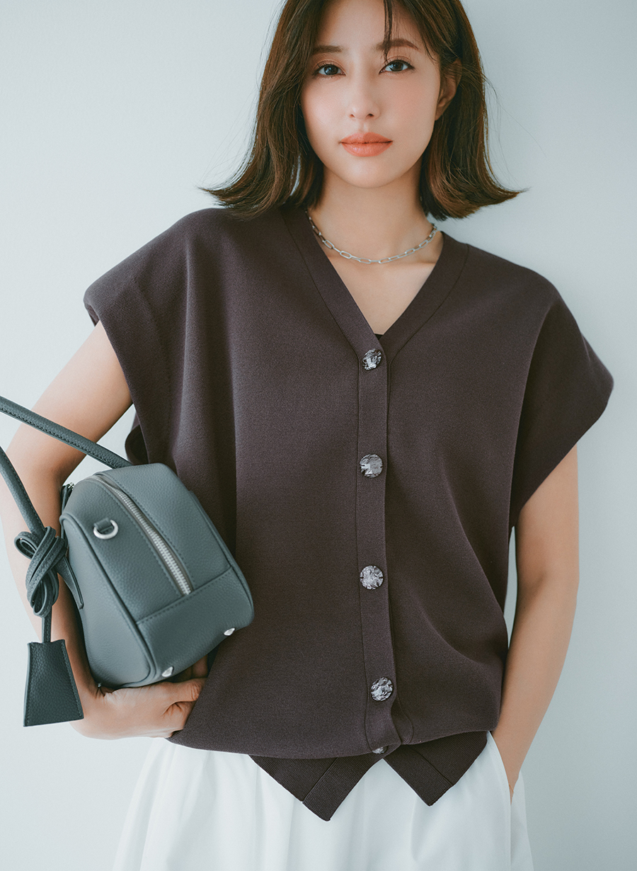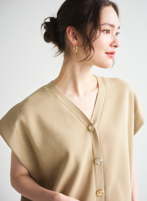 ・ベーシックで着やすいVネックデザインをベースにし、フロントの箔ビジューパーツで華やかなアクセントをプラス。