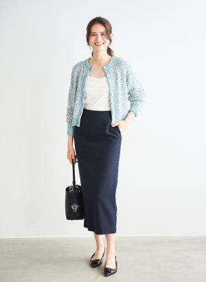 ・ボタンを閉めてプルオーバー風にしても、ボタンを開けて羽織りにしてもスタイリングの主役になるおススメのアイテムです。
