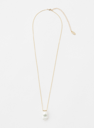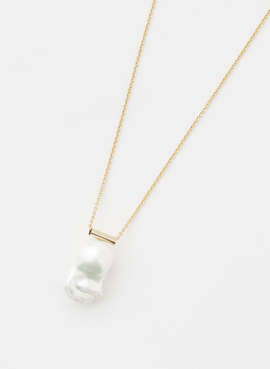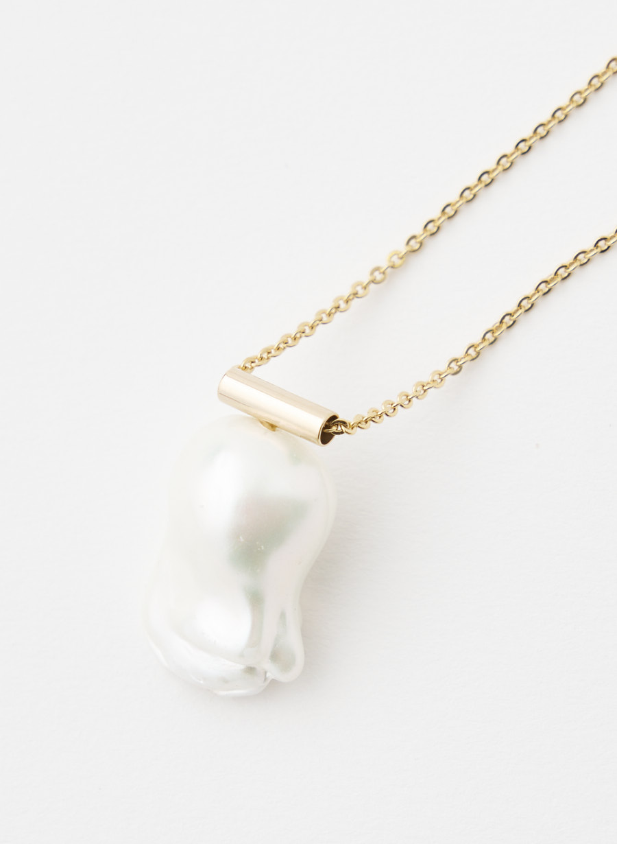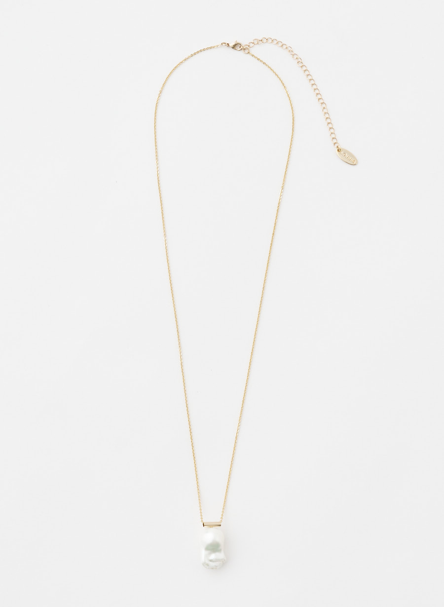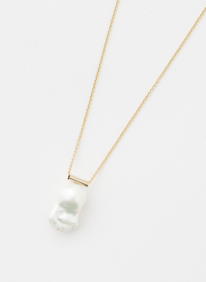 大粒のバロックパールをトップに使用したデザインペンダント。キラキラと反射する繊細なチェーンに、程よく重量感のある淡水風のパールを使い、高級感のある印象に仕上げました。