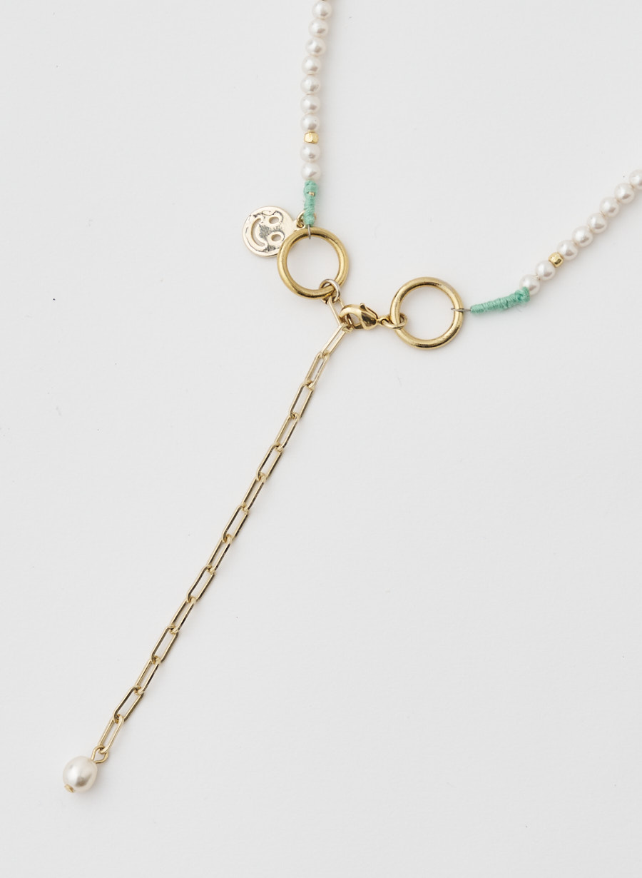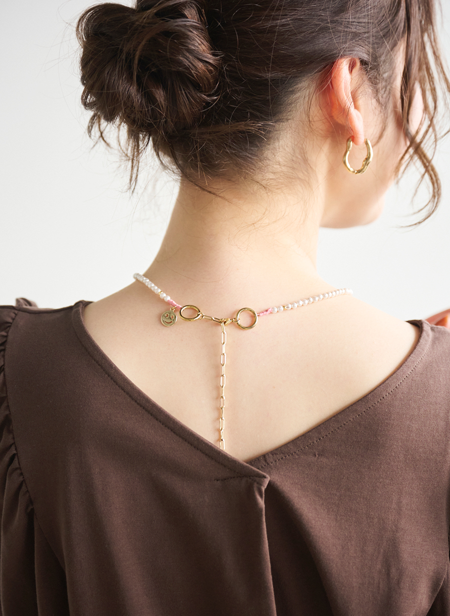 小粒パールのシンプルネックレスのバックスタイルに、デザインをプラスしたアイテムに仕上げました!